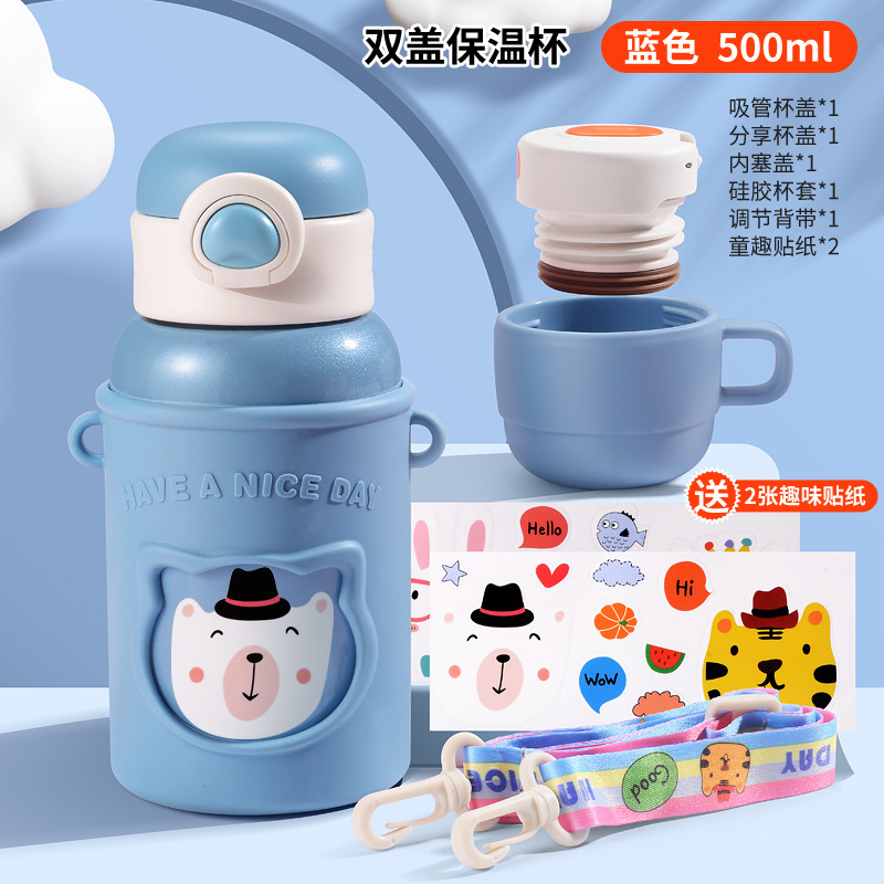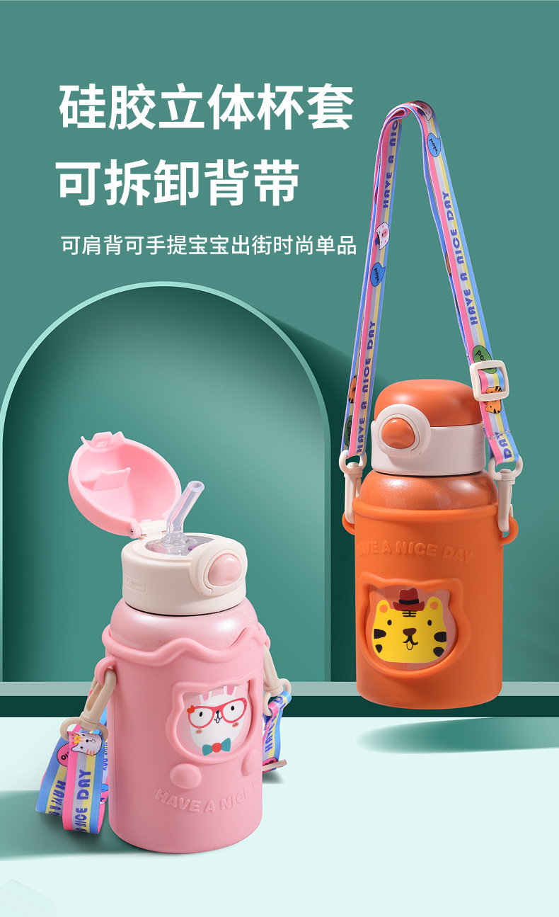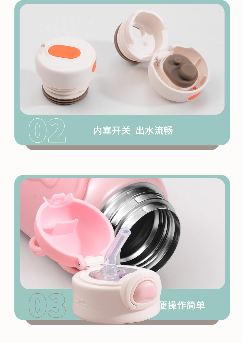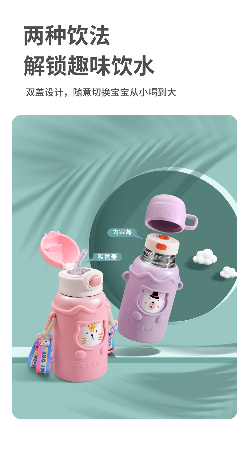 만화 더블 뚜껑 어린이 주전자 316 스테인레스 스틸 더블 레이어 튀는 보온병 컵 대용량 학생 휴대용 밀짚 컵스토어 가기