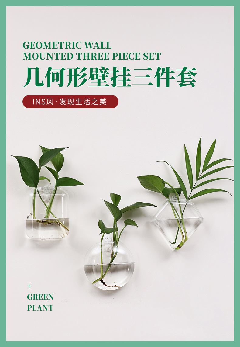 벽에 장착 된 수경 유리 꽃병 녹색 식물 물고기 탱크 교수형 식물 수경 화분 거실 사무실 장식 꽃병스토어 가기