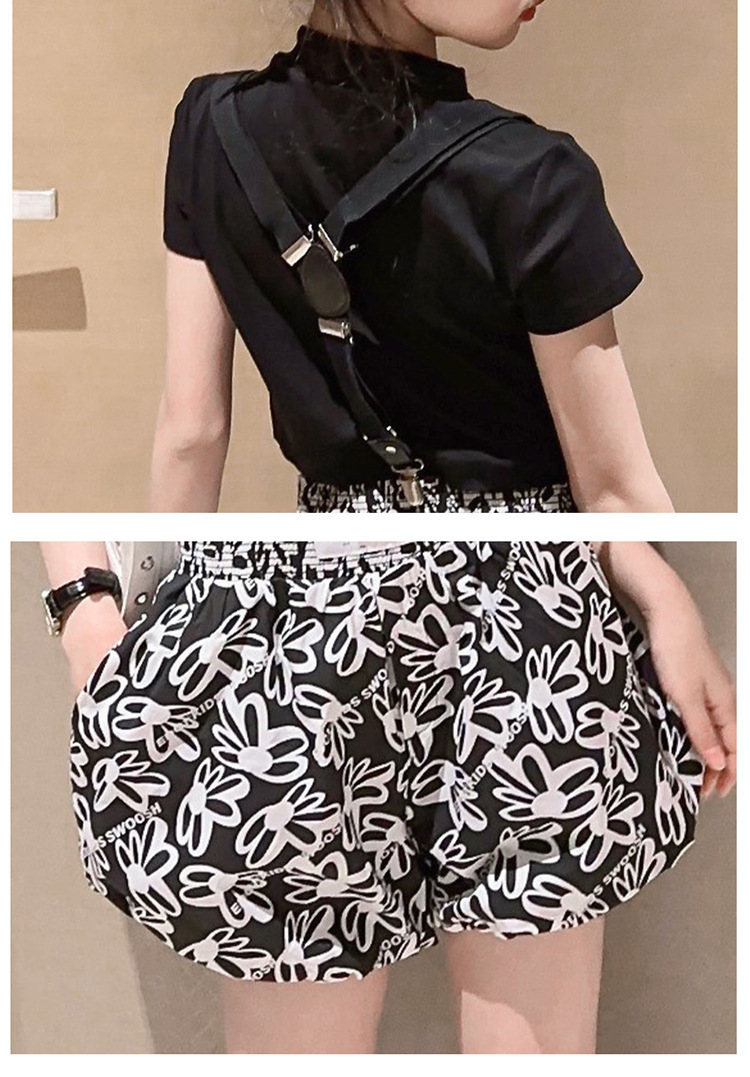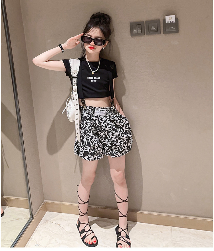 소녀의 최고 여름 편지 인쇄 반팔 올매치 새로운 스타일 중년 어린이 세트 스트랩 반바지 투피스 세트스토어 가기