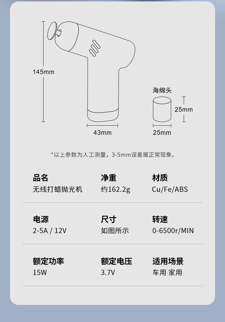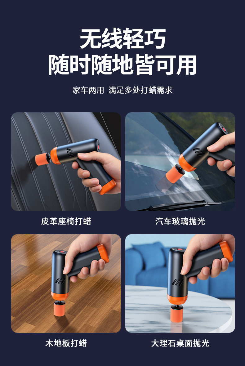1.支持汽车漆面抛光、打蜡、封釉、划痕修复,还能拓展到皮革座椅打蜡、汽车玻璃抛光、木地板打蜡、大理石桌面抛光,车家两用。