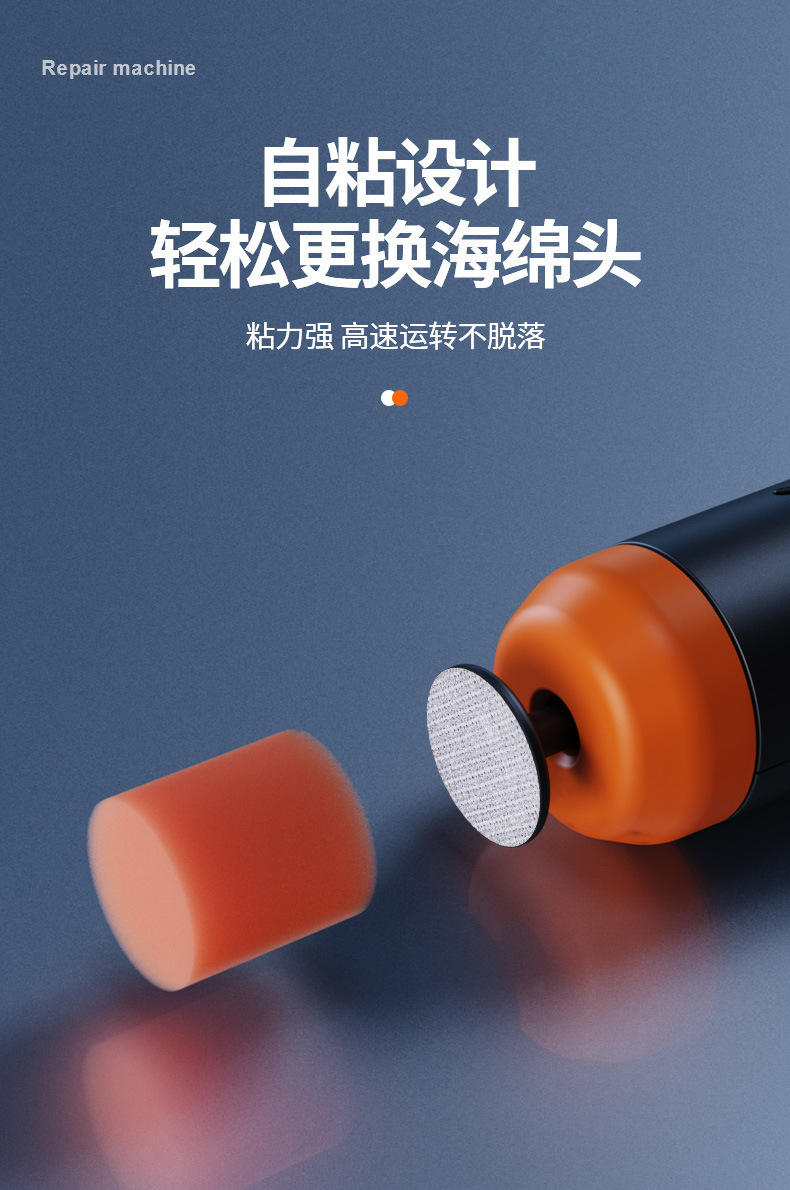 4.海绵头采用自粘设计,粘力强,高速运转也不会脱落,更换时一撕一贴即可完成,操作便捷。