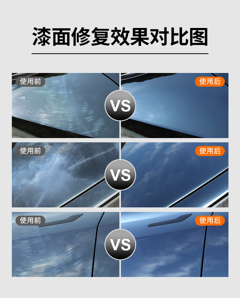 3.高速模式适合深度抛光、划痕修复,转速更高,光泽度提升更明显。