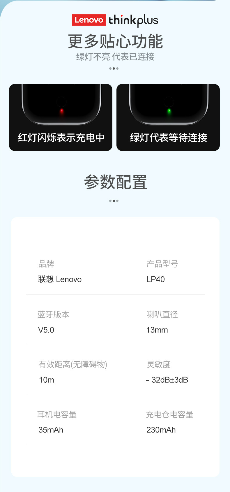 레노버/레노버 블루투스 이어폰 LP40 무선 세미 인이어 스테레오 해외 인기 TWS 블루투스 이어폰