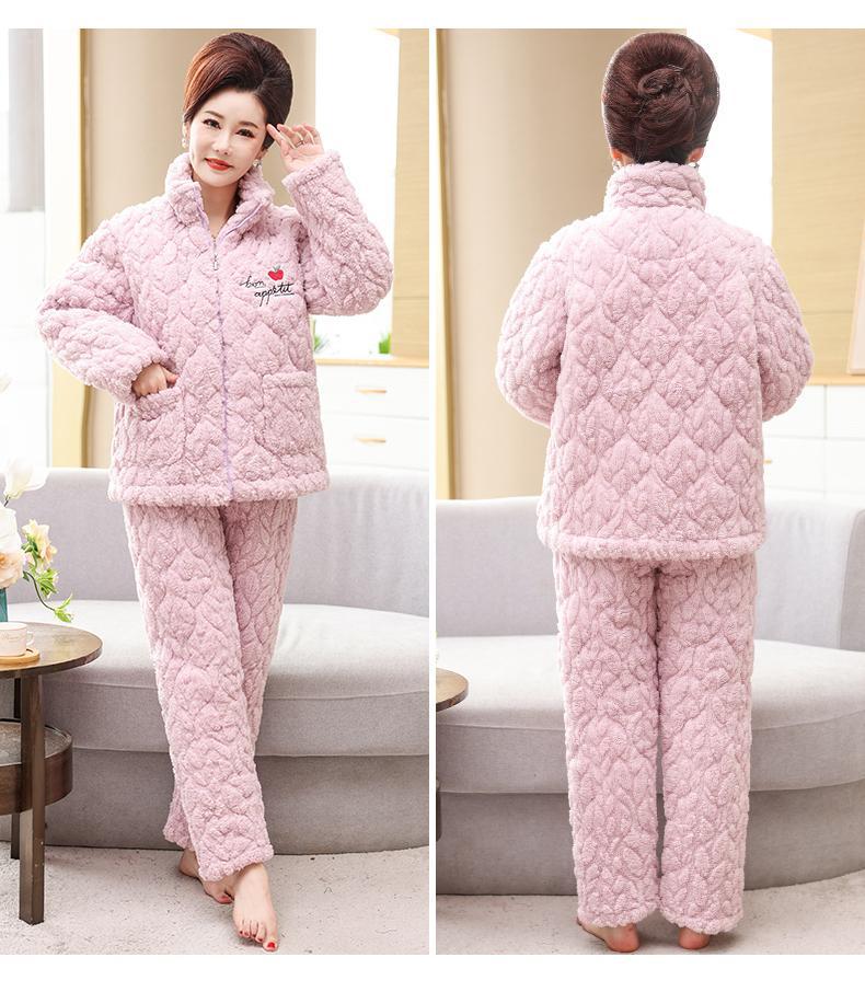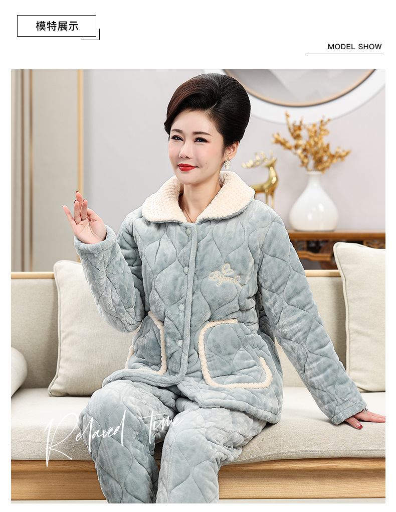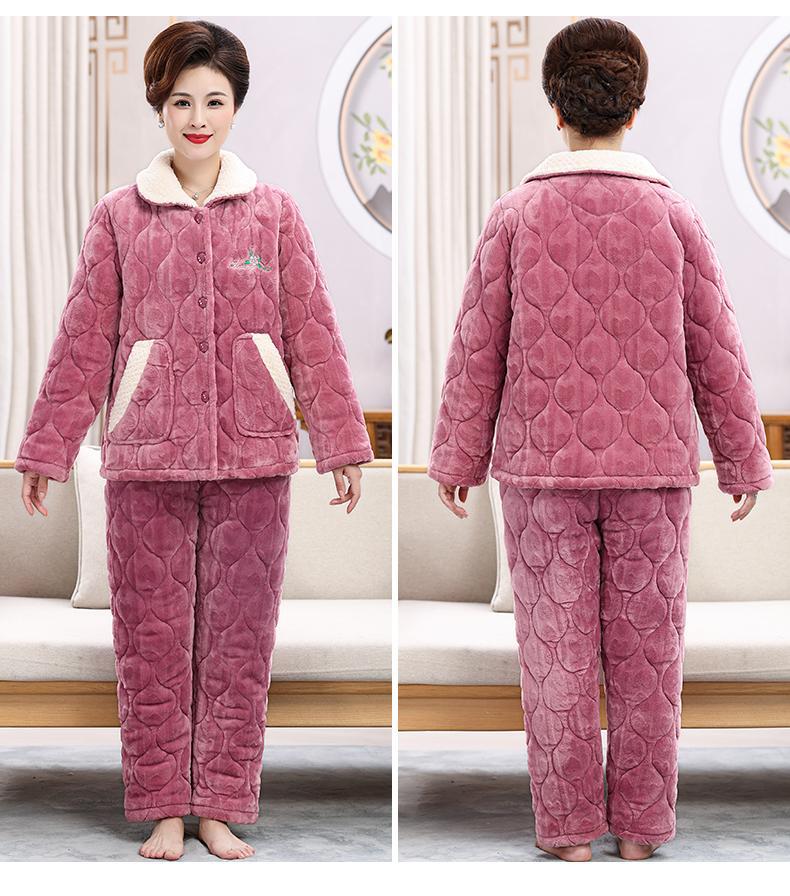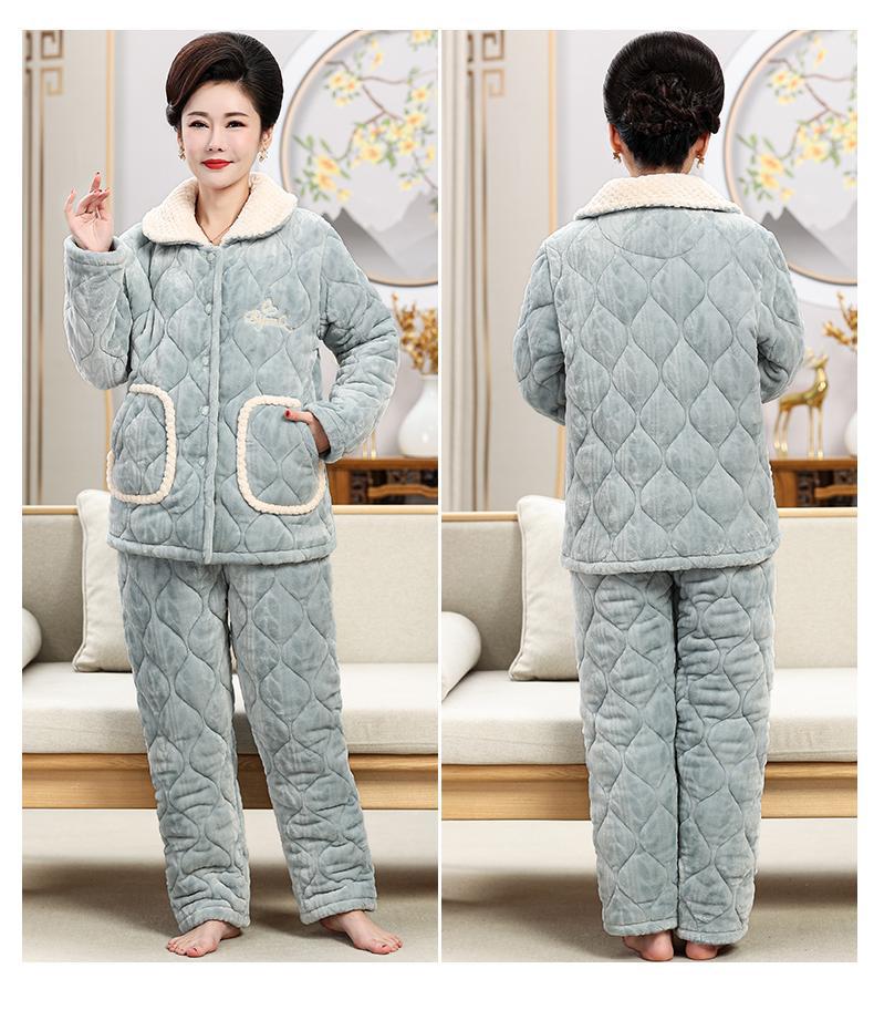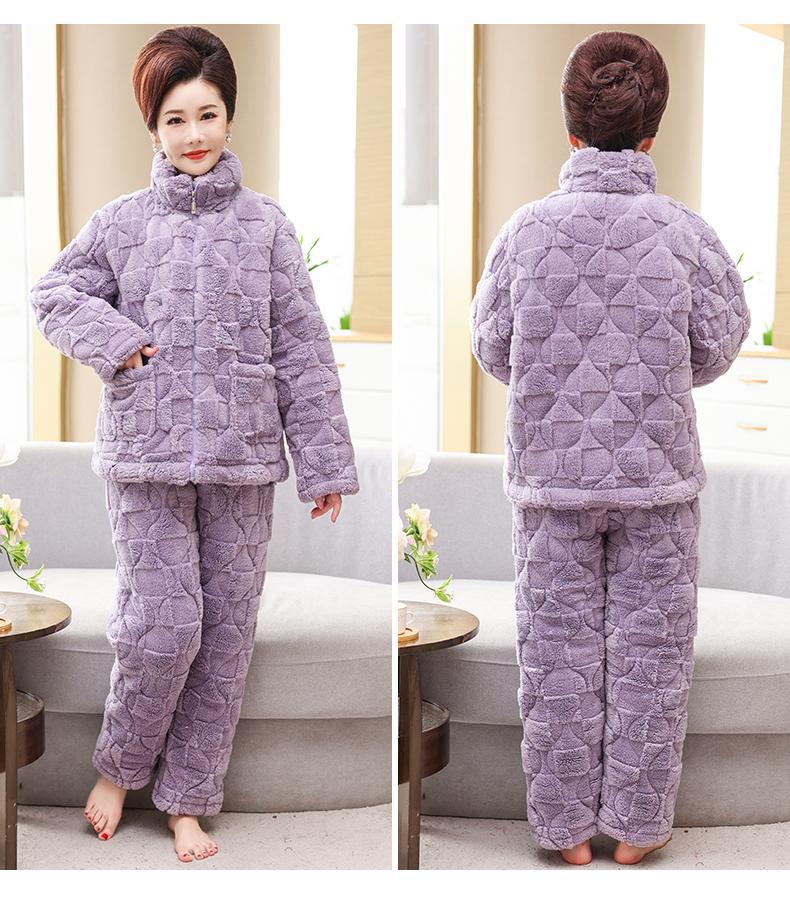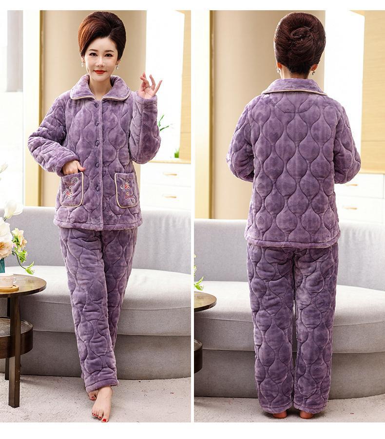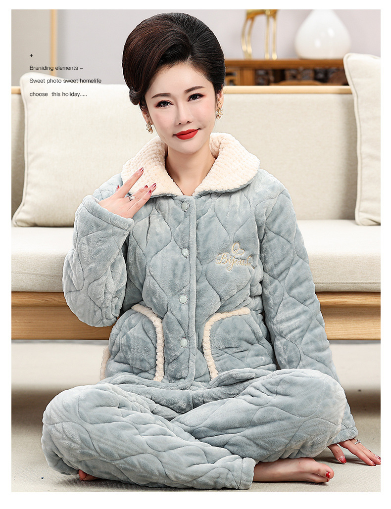 겨울 기모 두꺼운 잠옷 여성의 중년 어머니 3 층 면 중년 및 노인 산호 양털 따뜻한 여성 홈 옷