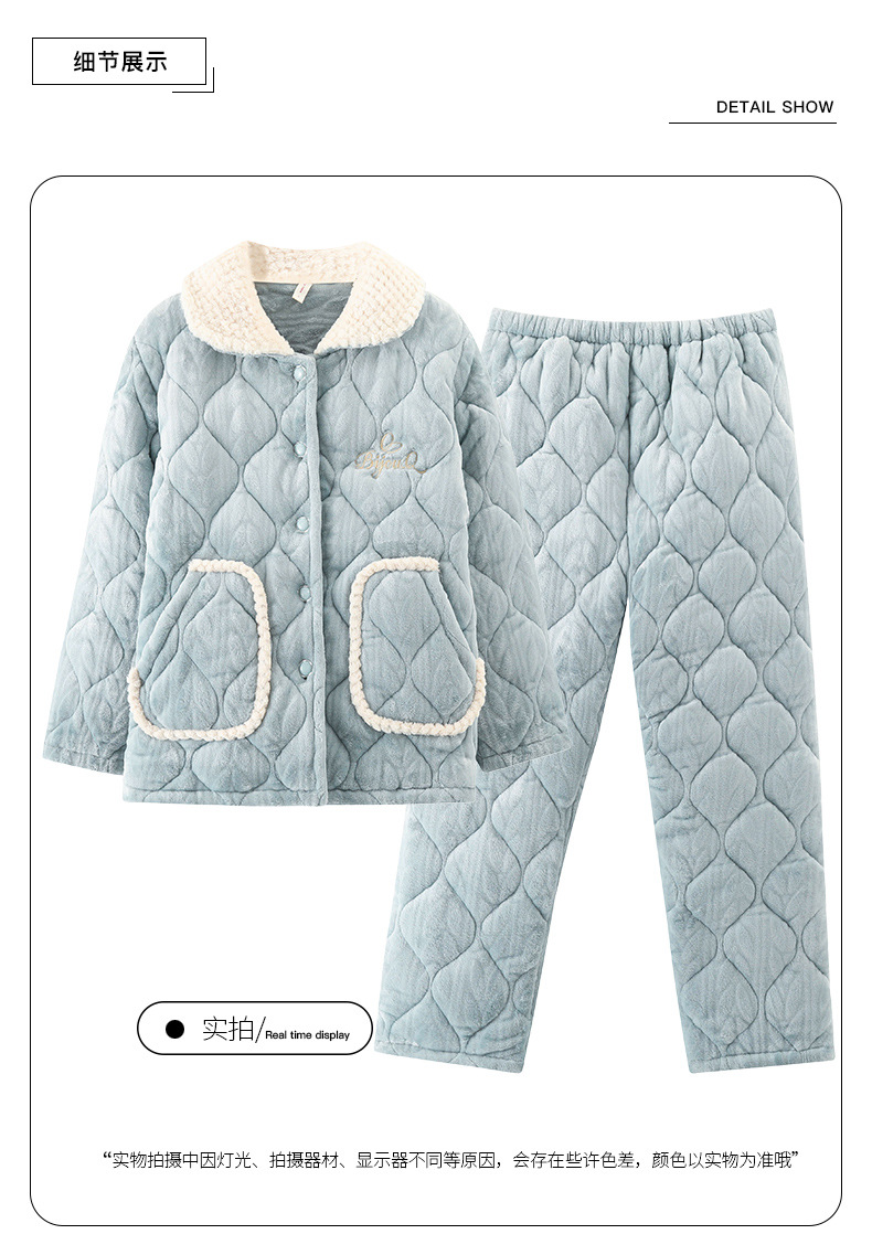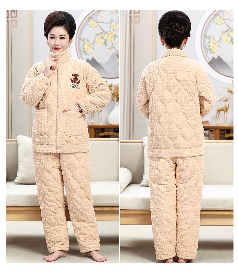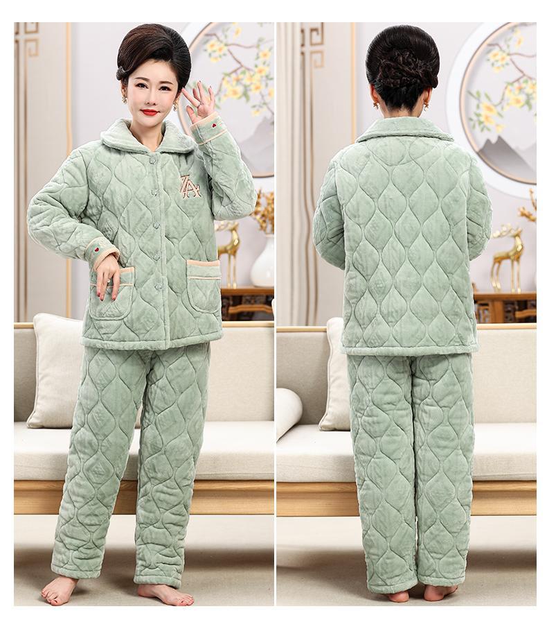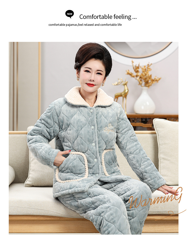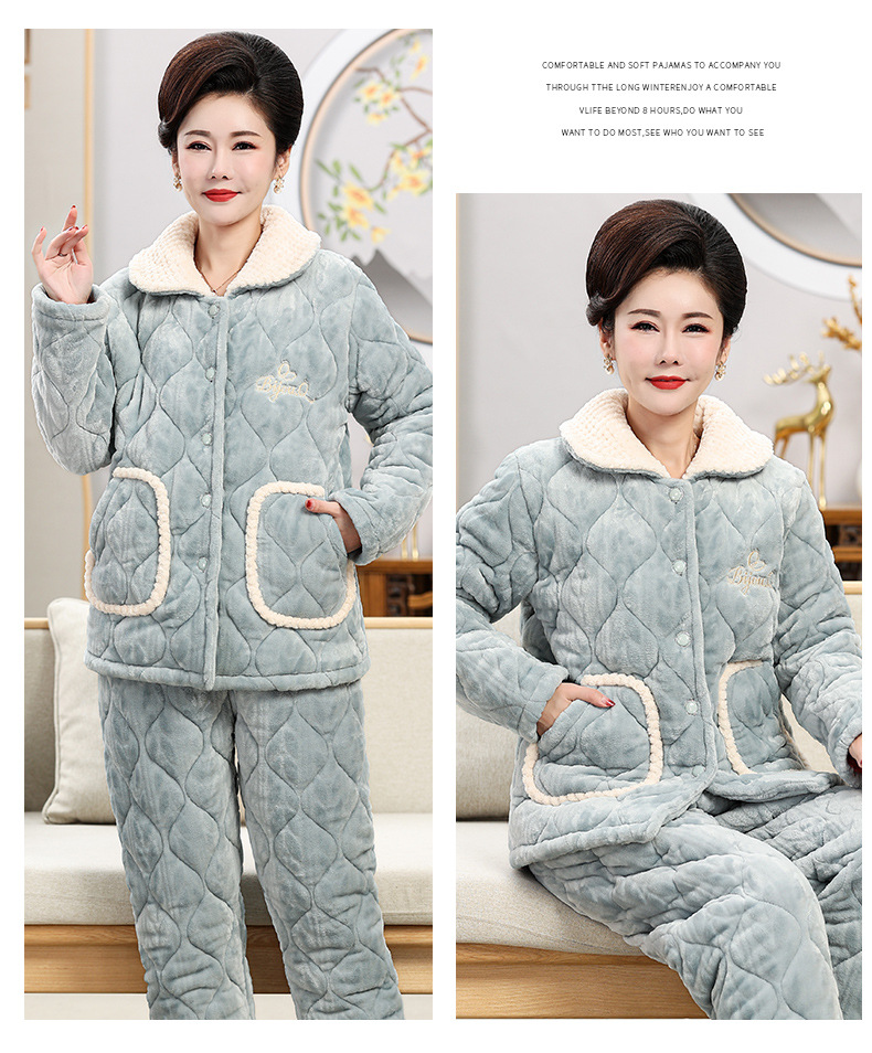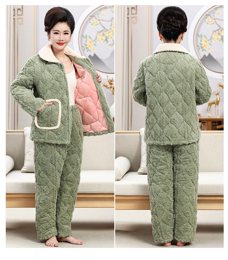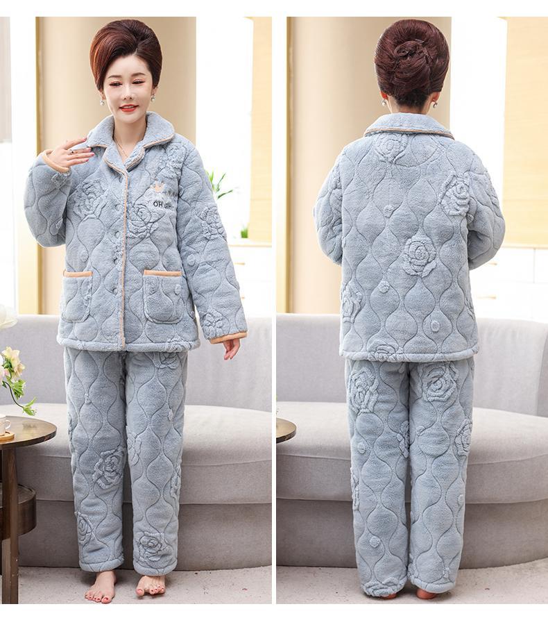 겨울 기모 두꺼운 잠옷 여성의 중년 어머니 3 층 면 중년 및 노인 산호 양털 따뜻한 여성 홈 옷