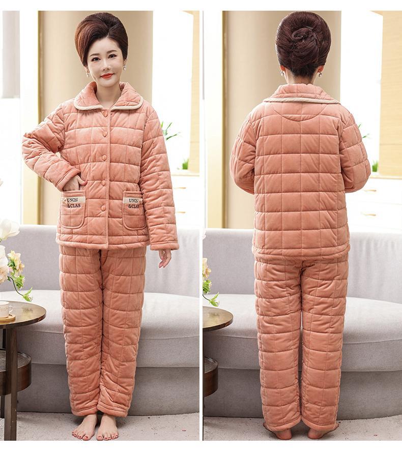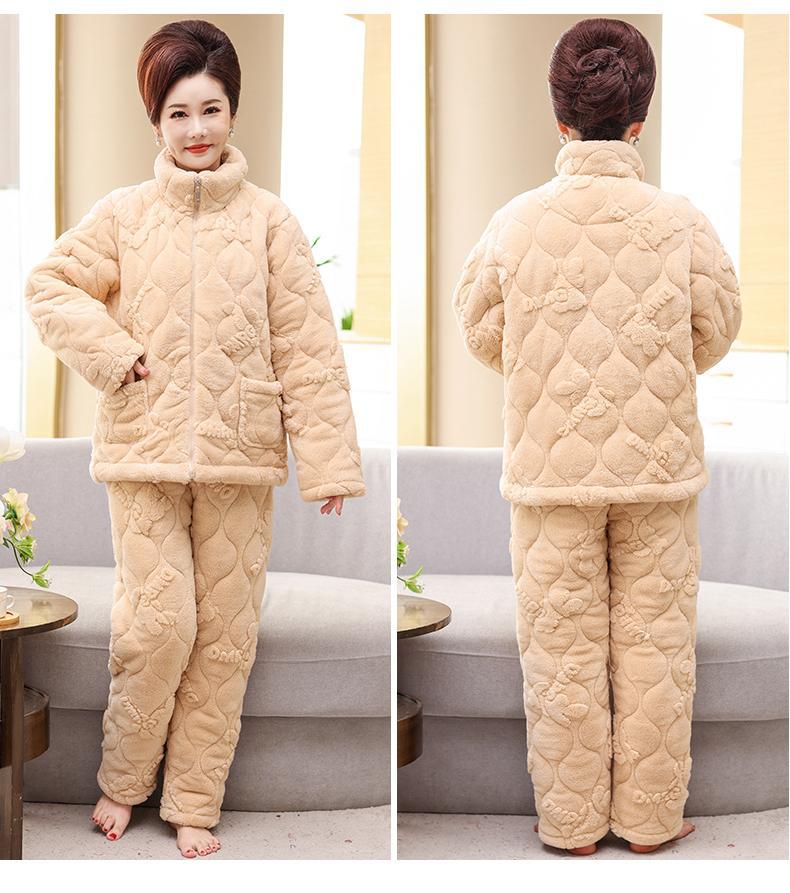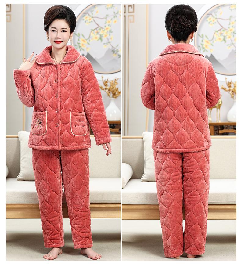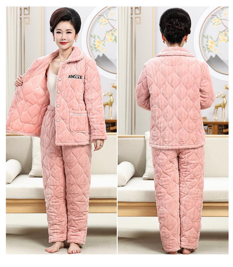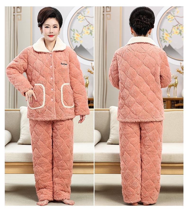 겨울 기모 두꺼운 잠옷 여성의 중년 어머니 3 층 면 중년 및 노인 산호 양털 따뜻한 여성 홈 옷스토어 가기