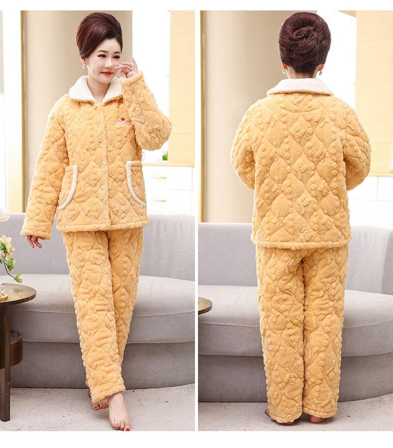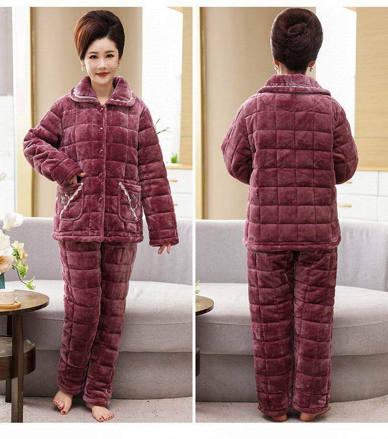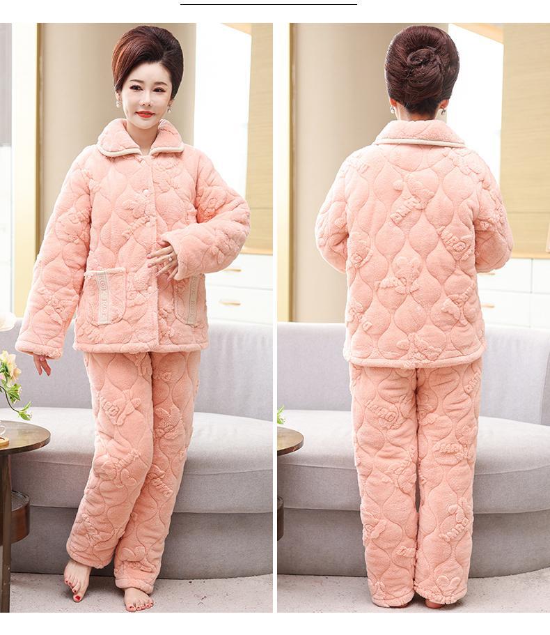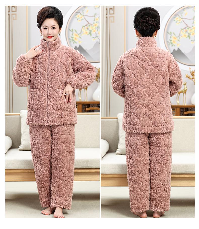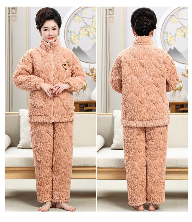 겨울 기모 두꺼운 잠옷 여성의 중년 어머니 3 층 면 중년 및 노인 산호 양털 따뜻한 여성 홈 옷스토어 가기