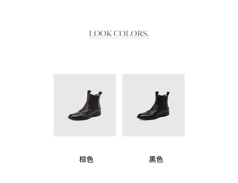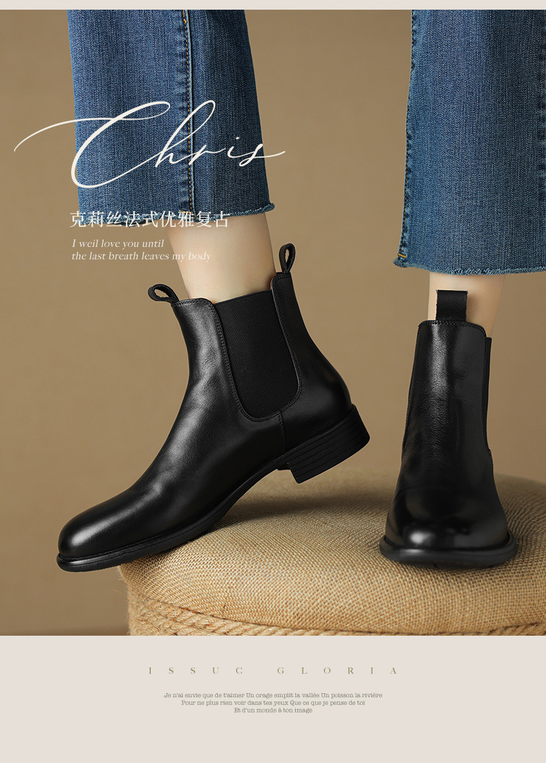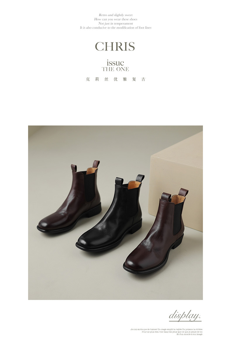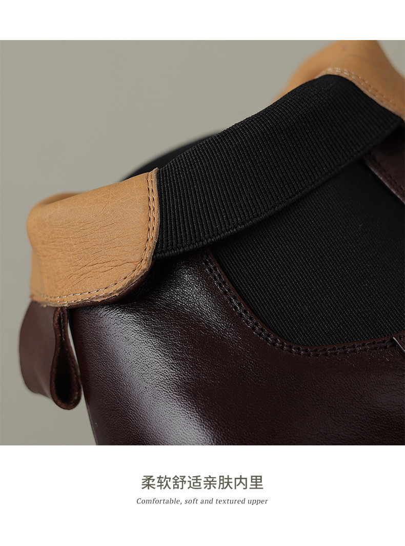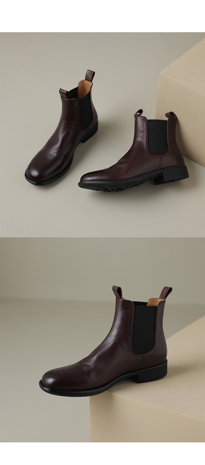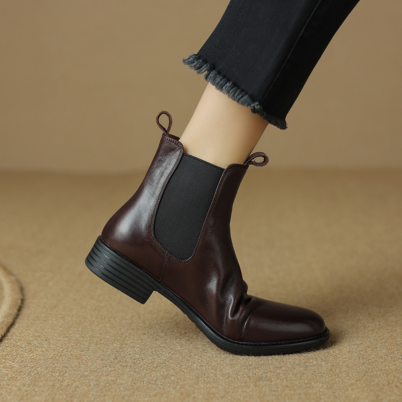 탑 송아지 가죽 첼시 부츠 여자 봄과 가을 싱글 부츠 두꺼운 힐 마틴 부츠 다크 브라운 미드 힐 쇼트 부츠 가죽 여성용 부츠