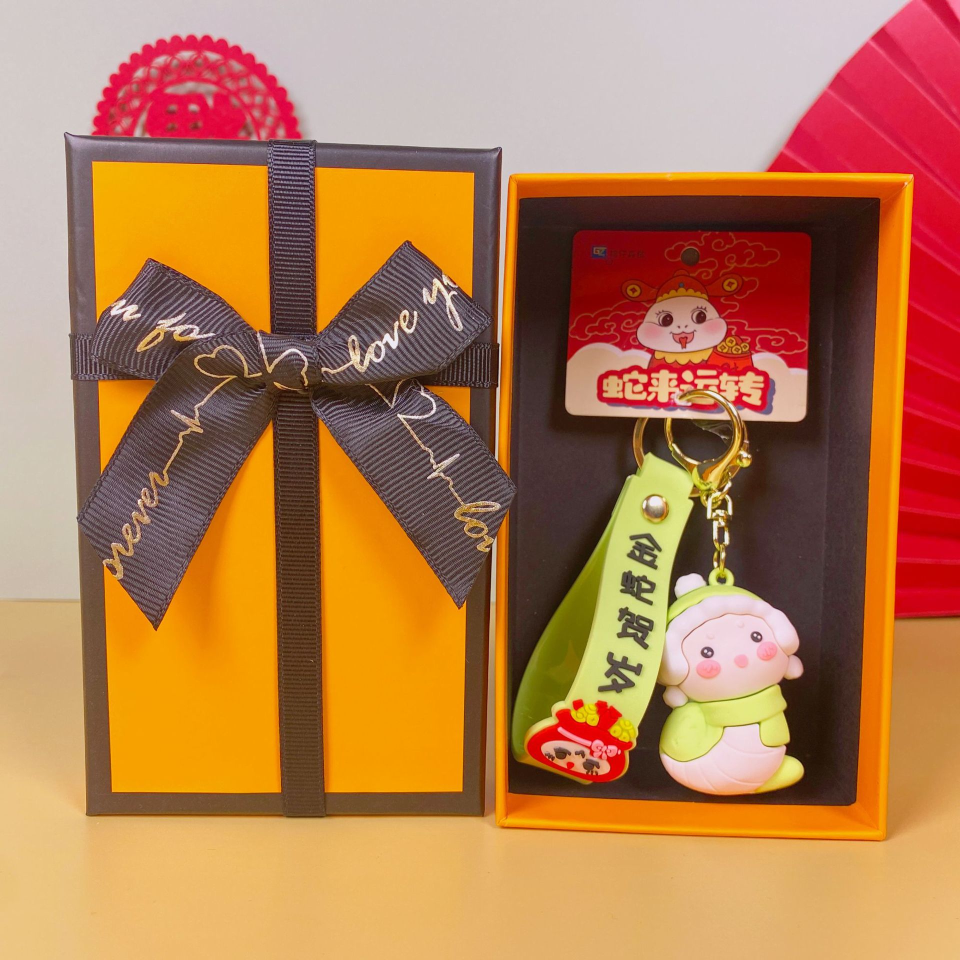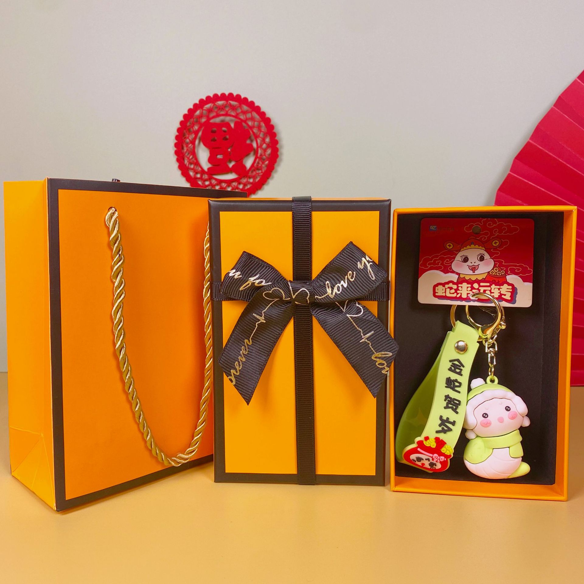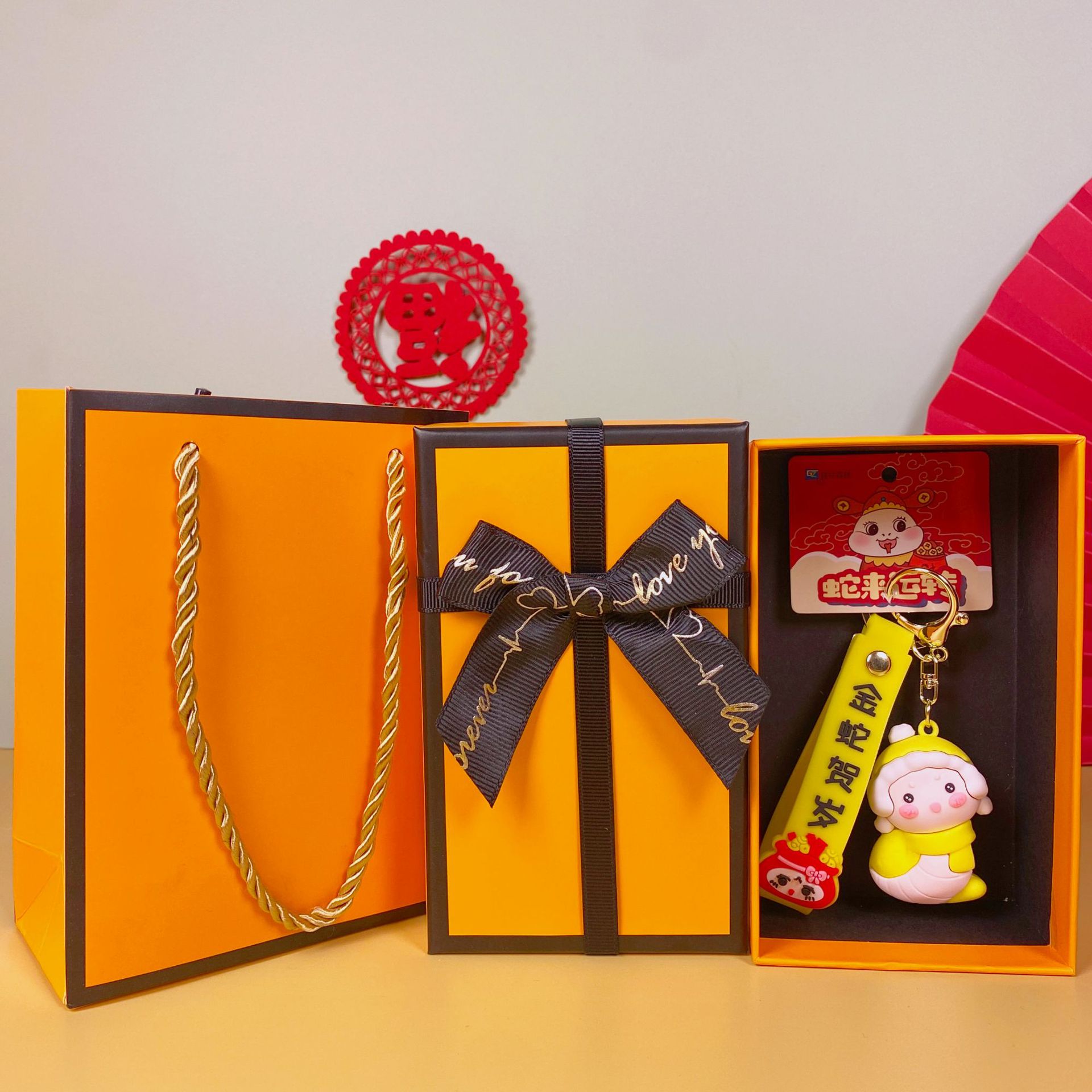 • 귀여운 작은 뱀-노란색(엘리베이터) + 주황색 선물 상자 + 선물 가방