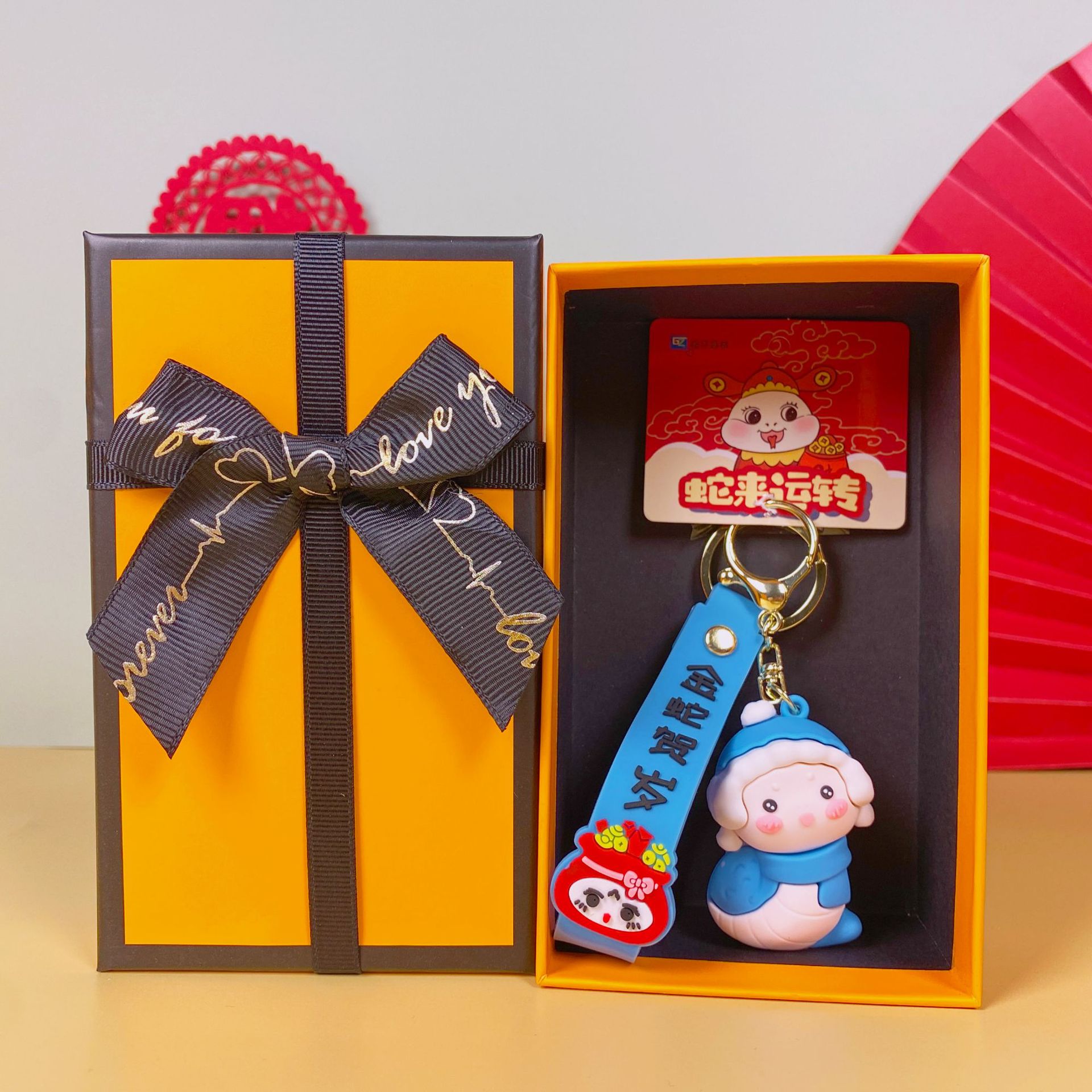 • 귀여운 작은 뱀 - 블루(엘리베이터) + 오렌지색 선물 상자 + 선물 가방