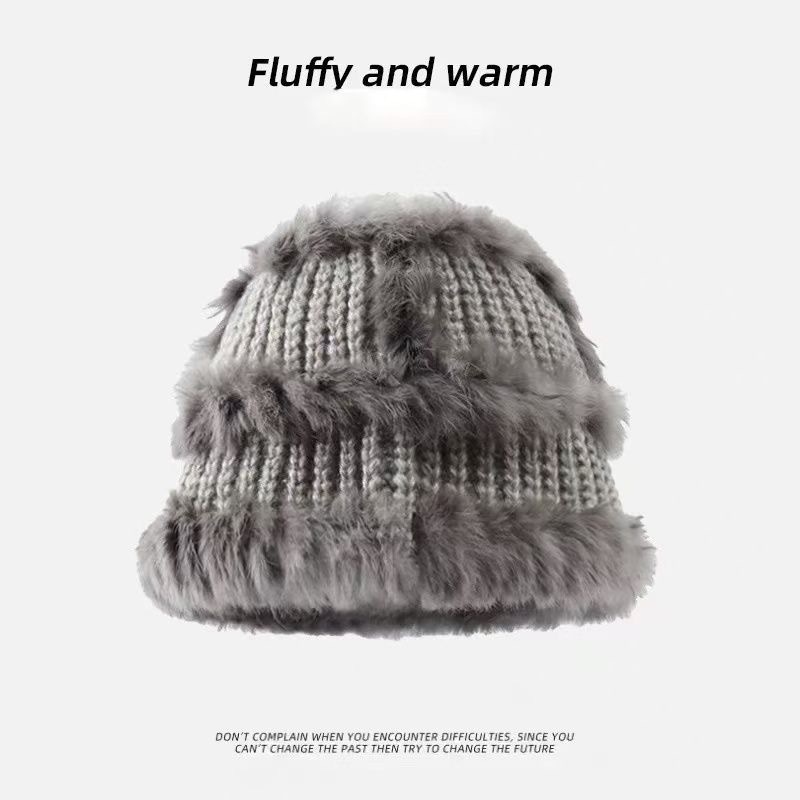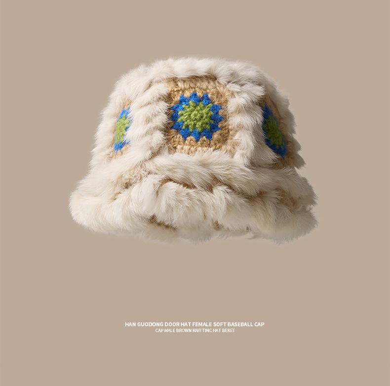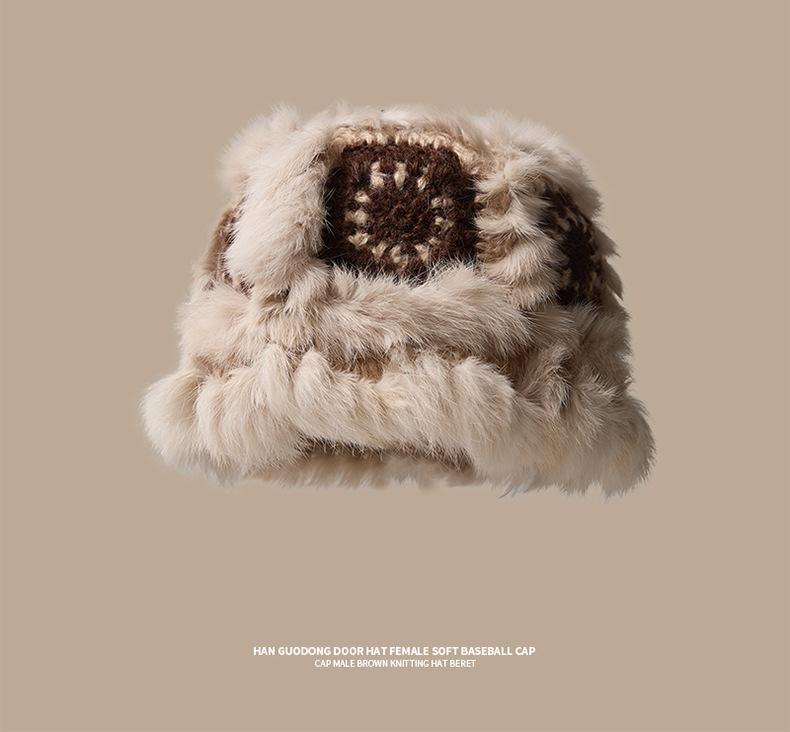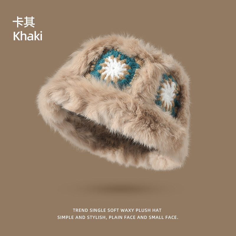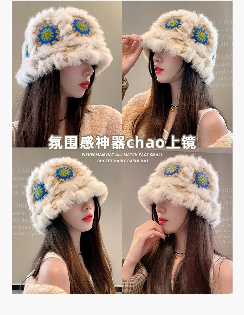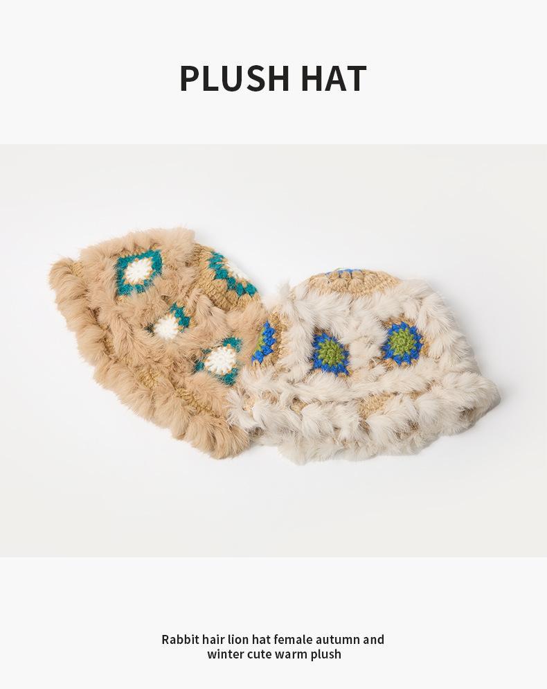 토끼 모피 각성 사자 모자 가을과 겨울 귀여운 따뜻한 봉제 어부 모자 모든 경기 얼굴 쇼 작은 양동이 큰 모자 브림 모피