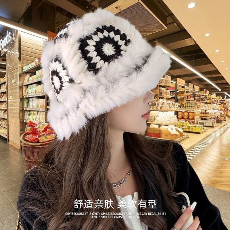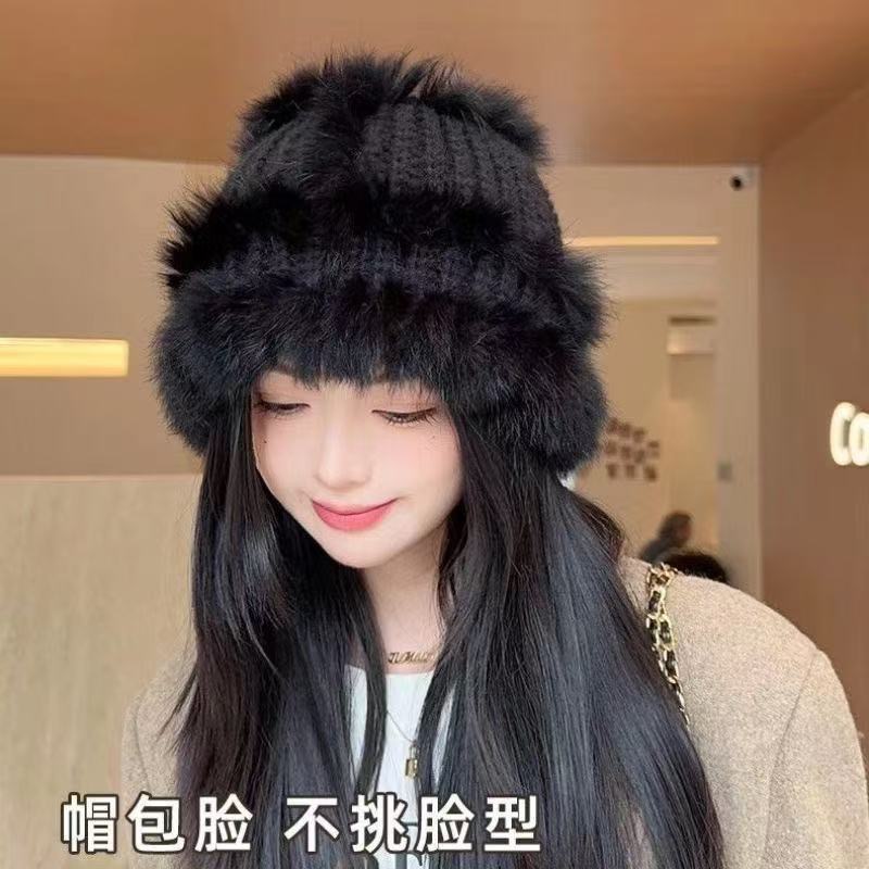 토끼 모피 각성 사자 모자 가을과 겨울 귀여운 따뜻한 봉제 어부 모자 모든 경기 얼굴 쇼 작은 양동이 큰 모자 브림 모피스토어 가기