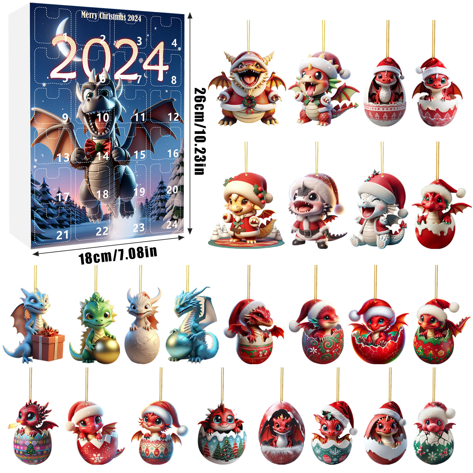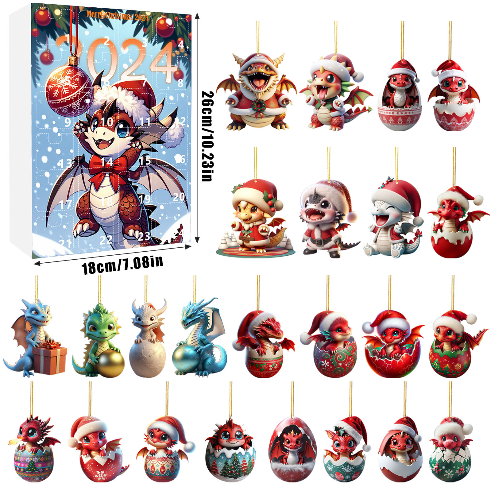 국경 간 크리스마스 카운트 다운 블라인드 박스 미니 아크릴 아기 용 펜던트 크리스마스 블라인드 박스