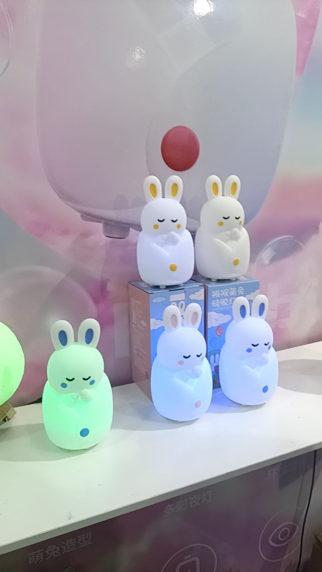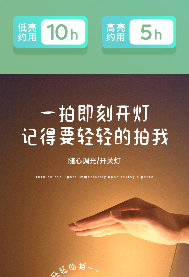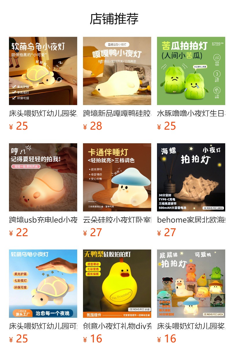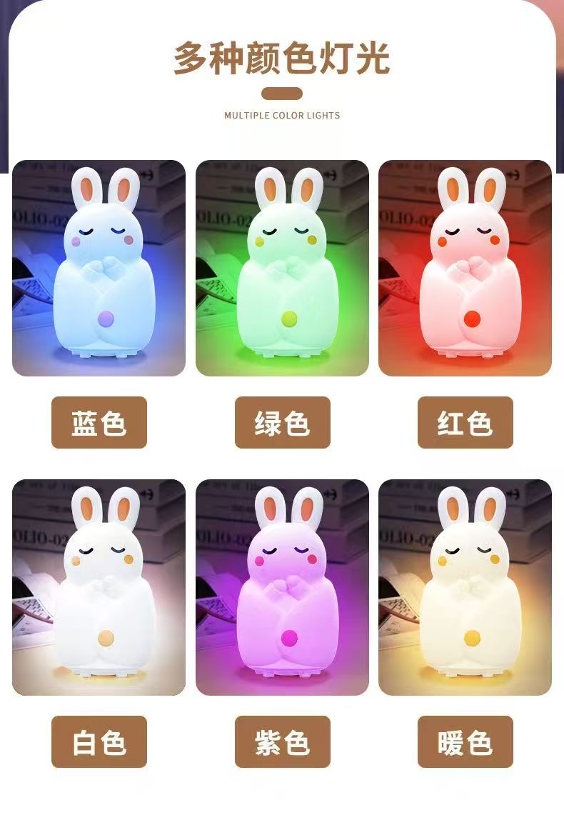 产品功能:硅胶外壳柔软,触碰变色、有触感,灯光颜色柔和,不伤眼、变光顺序(白光,红光,绿光,蓝光,呼吸变色),超长待机、造型萌动可爱