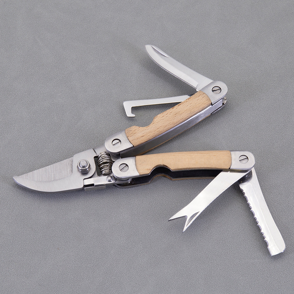 스테인레스 스틸 브랜치 가위 나무 손잡이 곡선 손잡이 4 대 1 다기능 가위 철 가위