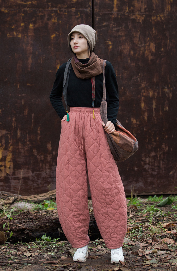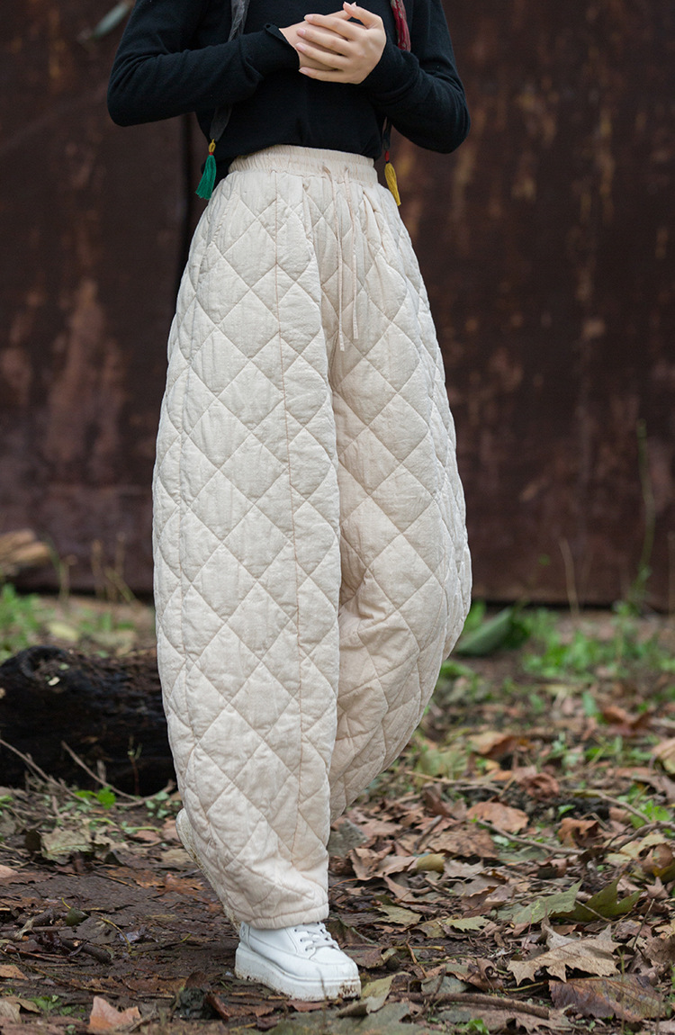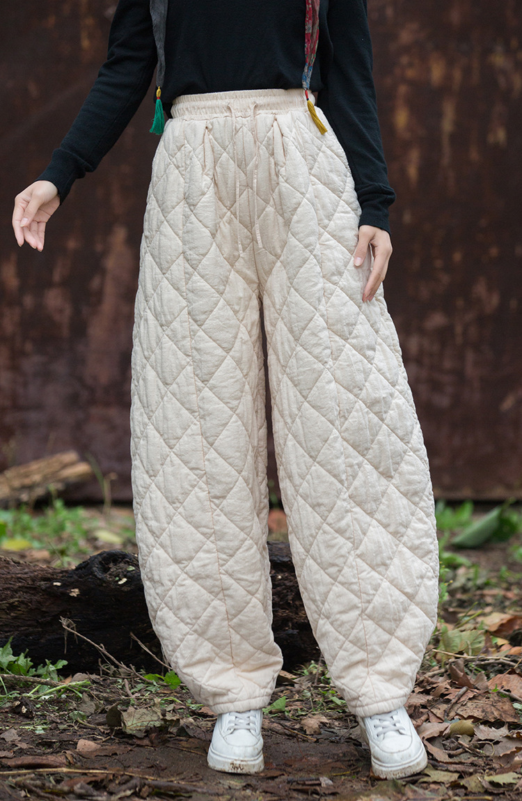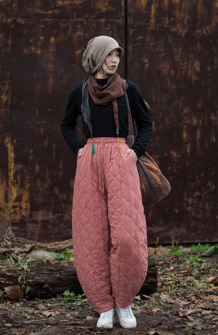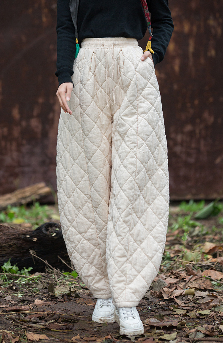 2025 겨울 여성복 신상 누빔 두꺼운 퀼팅 마름모 무늬 아빠 바지 예술적 루즈핏 다용도 여성용 면바지스토어 가기
