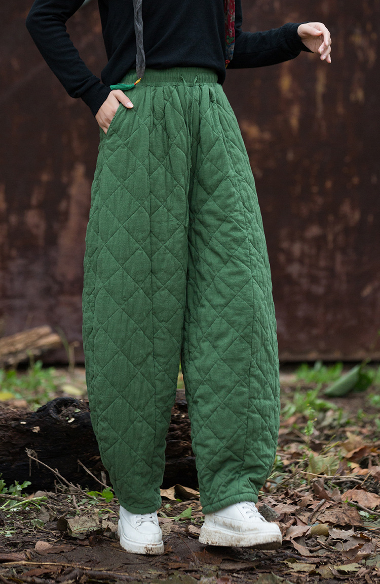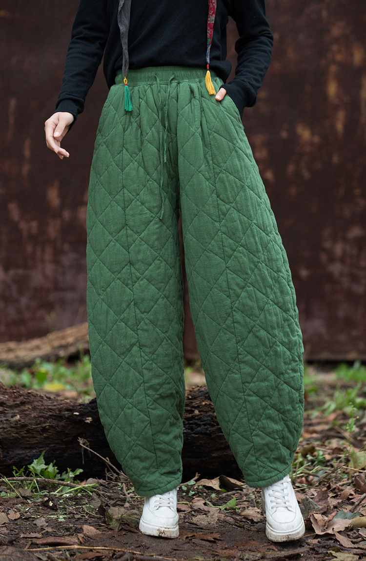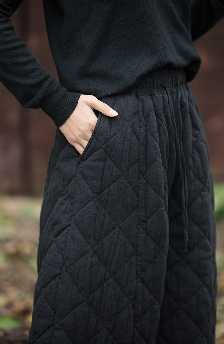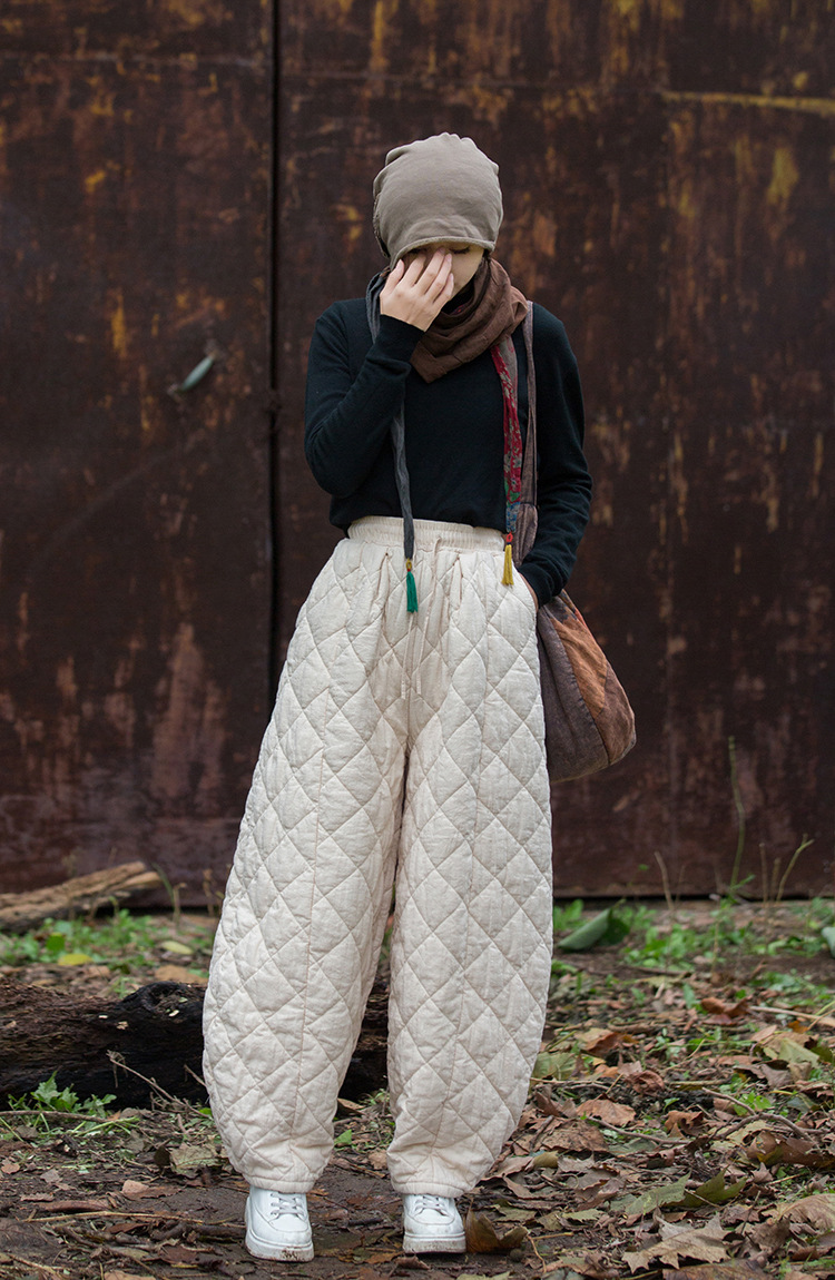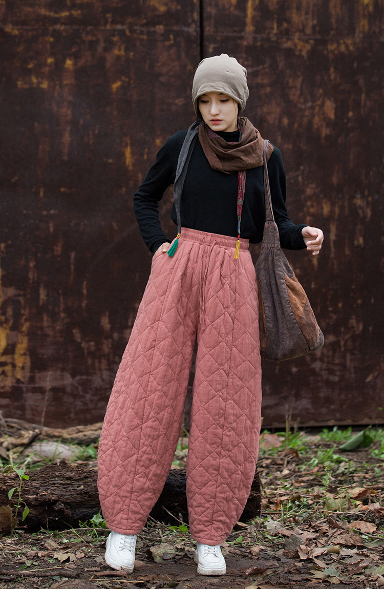 2025 겨울 여성복 신상 누빔 두꺼운 퀼팅 마름모 무늬 아빠 바지 예술적 루즈핏 다용도 여성용 면바지스토어 가기