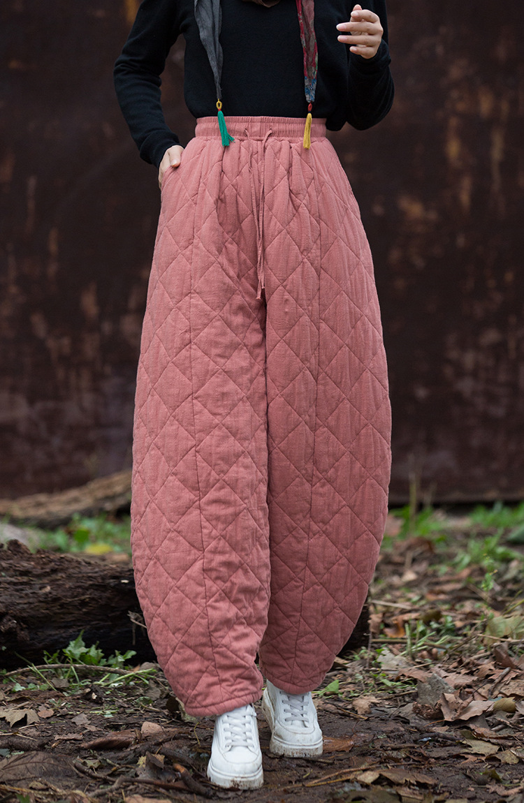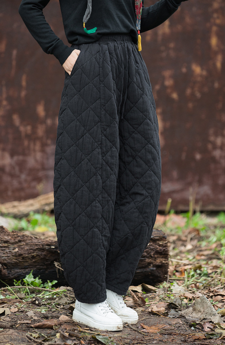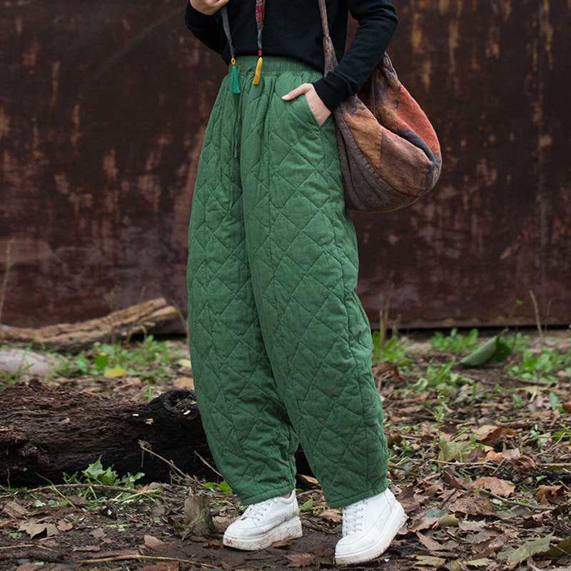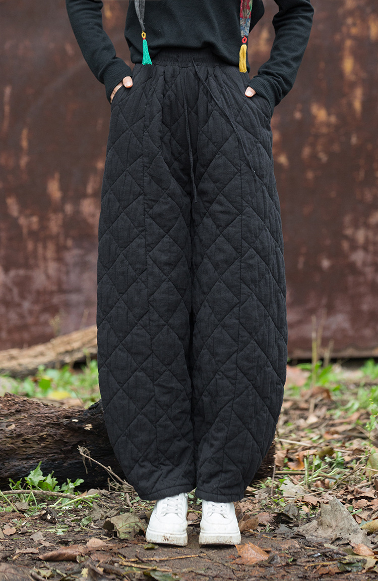 2025 겨울 여성복 신상 누빔 두꺼운 퀼팅 마름모 무늬 아빠 바지 예술적 루즈핏 다용도 여성용 면바지