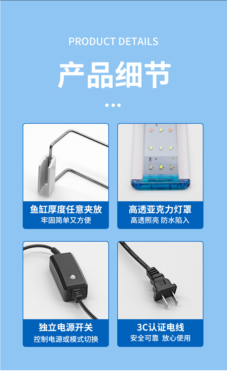 물고기 탱크 램프 관상용 물 잔디 색상 변경 램프 수족관 led 램프 조명 특수 램프 브래킷 램프 조경 잔디 탱크 램프 물고기