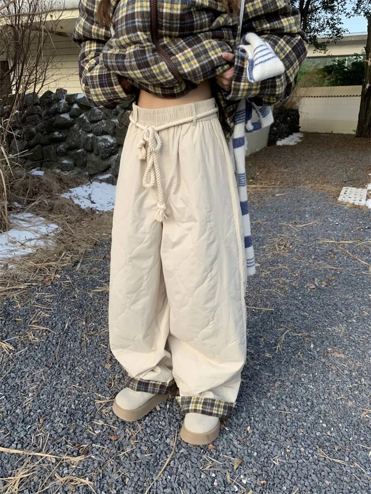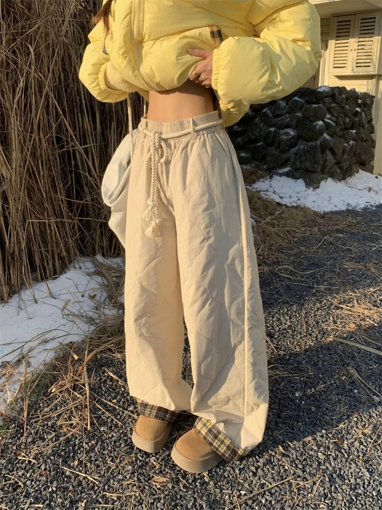 미국 레트로 폴라레 양털 면 바지 2024 겨울 캐주얼 바지 기모 방수 바지 스키 바지 방풍 바지 여성용 트렌디스토어 가기