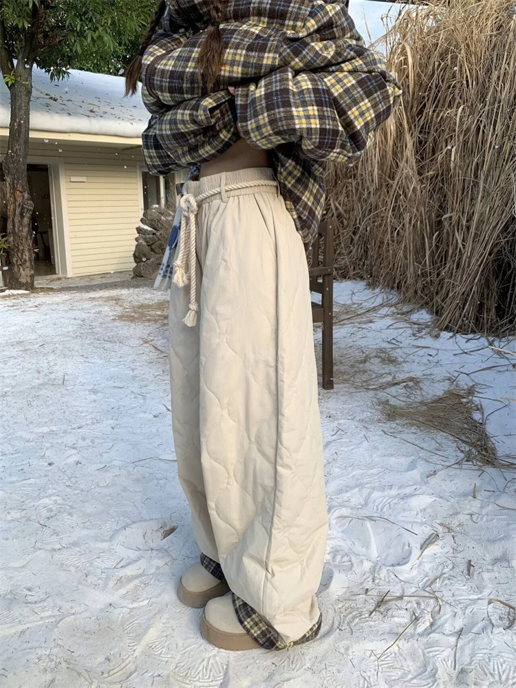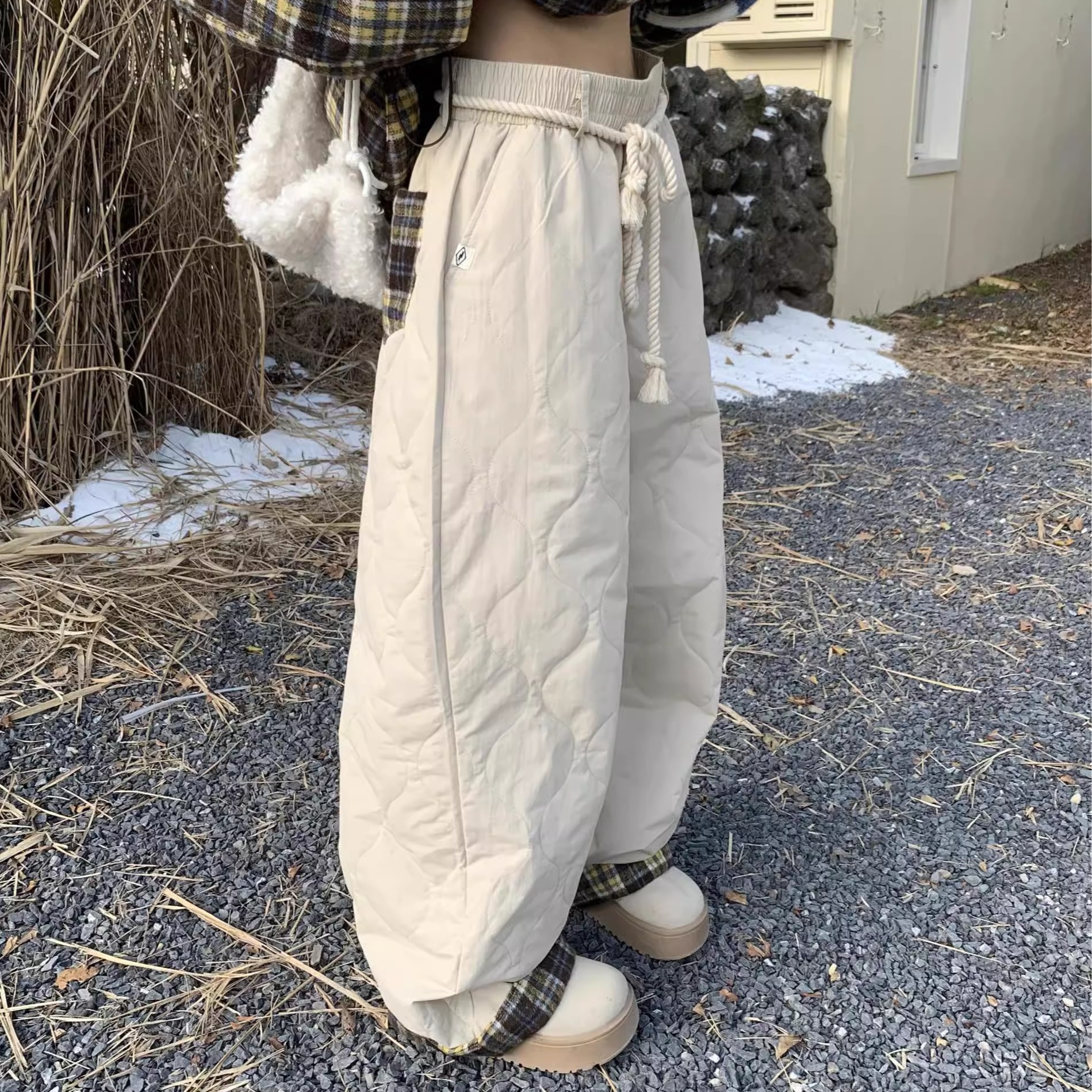 미국 레트로 폴라레 양털 면 바지 2024 겨울 캐주얼 바지 기모 방수 바지 스키 바지 방풍 바지 여성용 트렌디