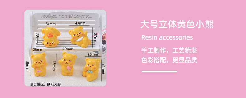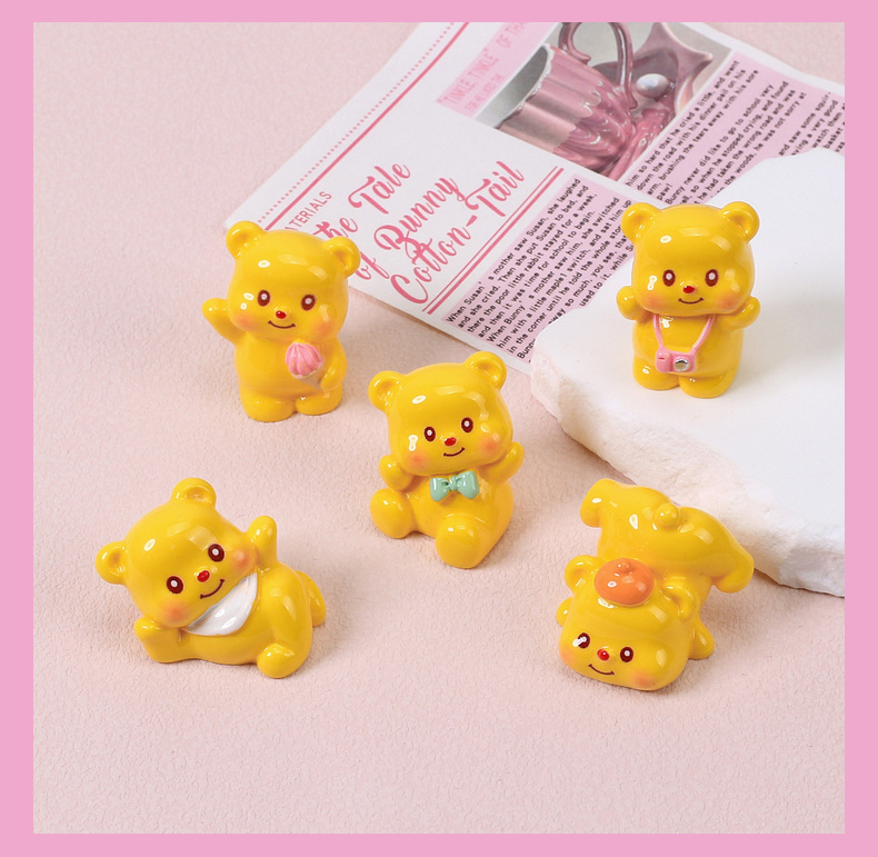 대형 3 차원 노란색 곰 크림 접착제 DIY 수제 머리핀 냉장고 스티커 소재 수지 액세서리 도매스토어 가기