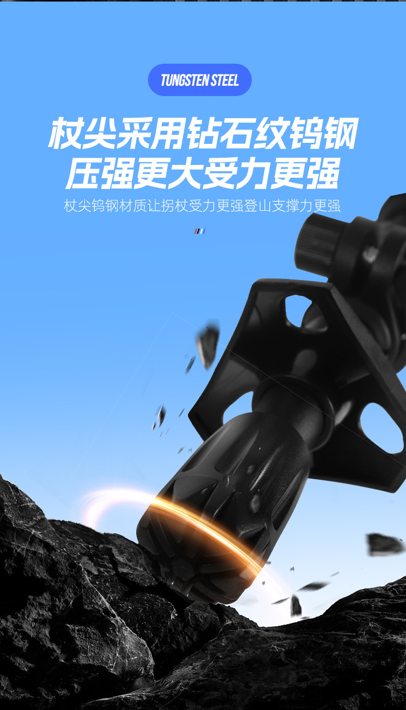접이식 3 섹션 스트레이트 핸들 외부 잠금 등반 스틱 야외 하이킹 산 등반 휴대용 미끄럼 방지 탄소 섬유 목발