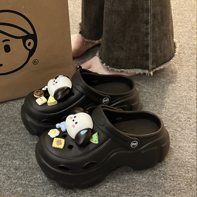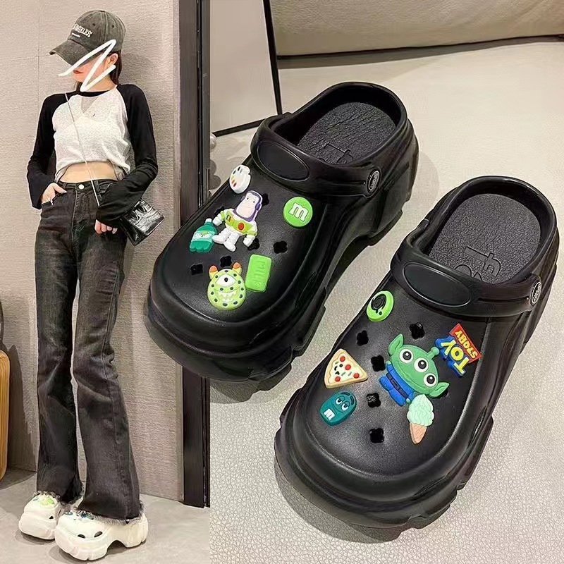 두꺼운 밑창 고조 구멍 신발 인기있는 여성 겉옷 사무실 미끄럼 통기성 수술실 Baotou 하프 슬리퍼 여성 여름스토어 가기