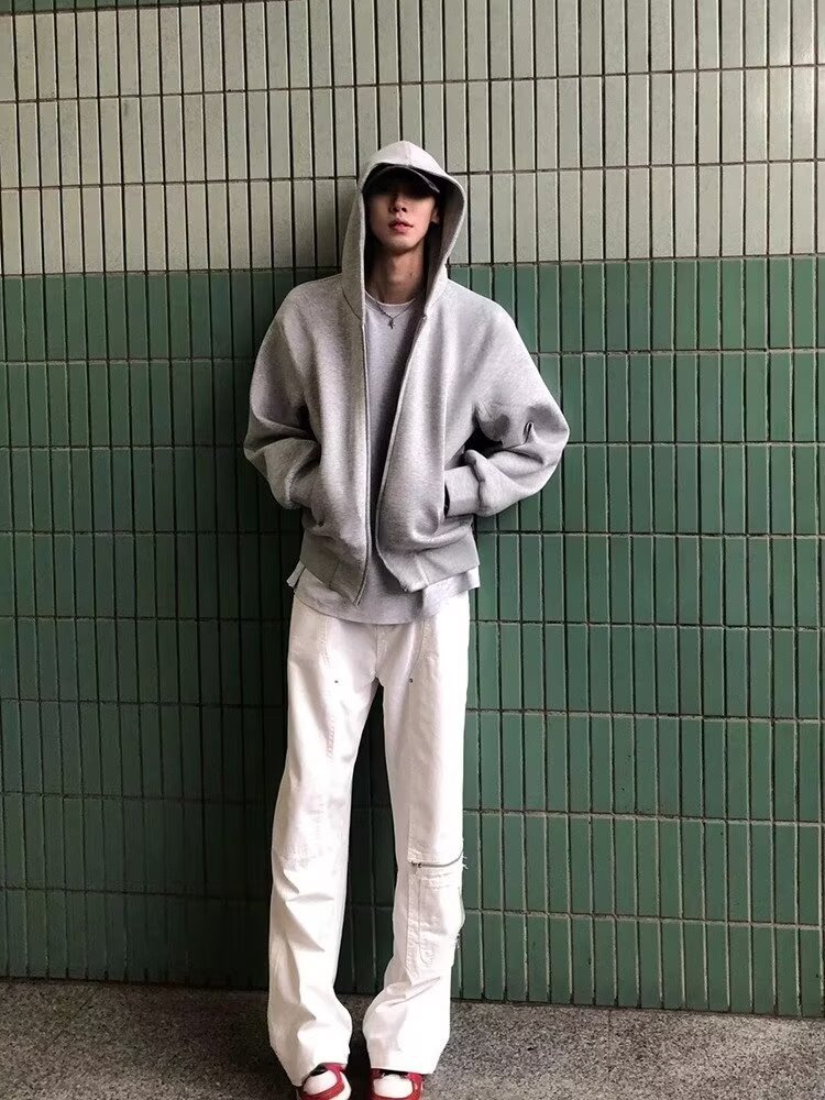 십대 가을 미국 패션 브랜드 카디건 스웨터 남자 올 매치 캐주얼 탑 스포츠 후드 지퍼 재킷스토어 가기