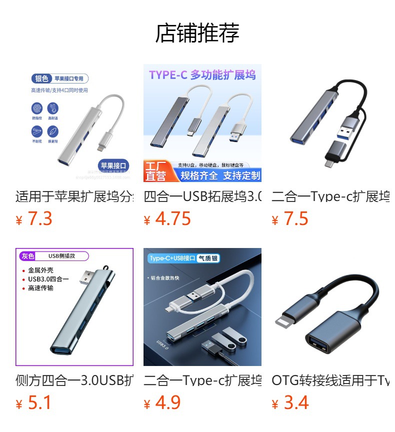接口形式:Type-C 转 1XUSB3.0+3XUSB2.0