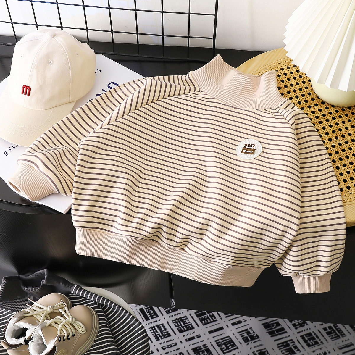 어린이 하이 칼라 스웨터 2024 가을과 겨울 새로운 소년 소녀 기모 패딩 따뜻한 스웨터 아동베이스 셔츠스토어 가기