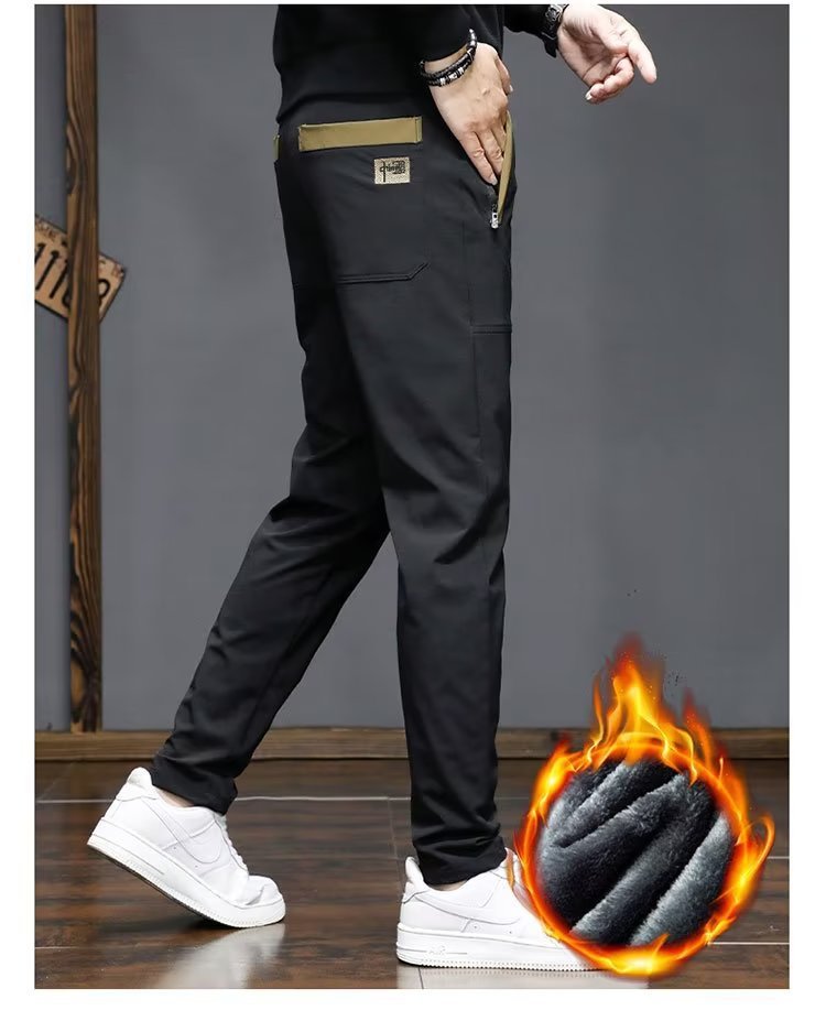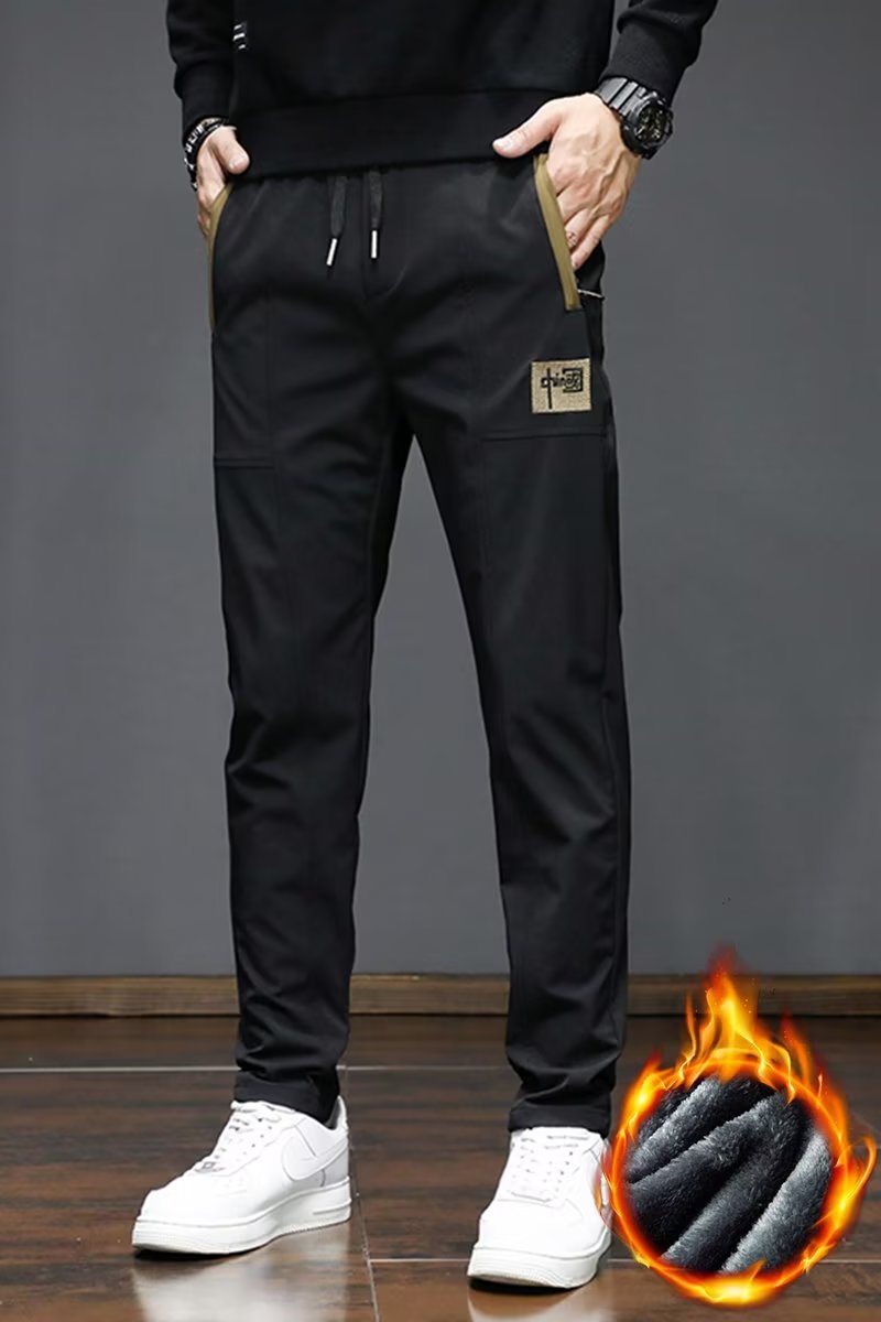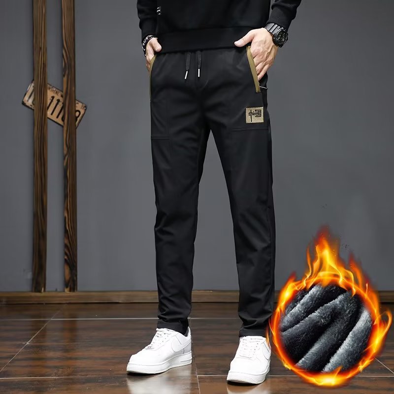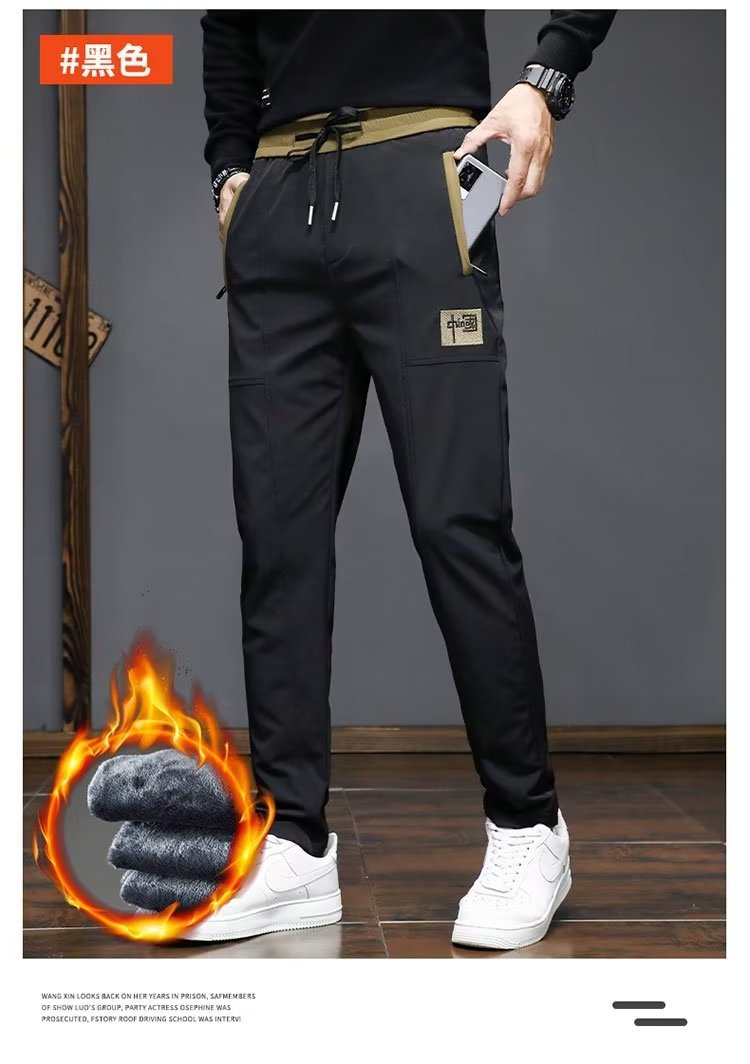 가을 바지 남자의 가을과 겨울 느슨한 직선 한국 스타일 기모 캐주얼 스포츠 바지 Guofeng 자수 플러스 사이즈 바지