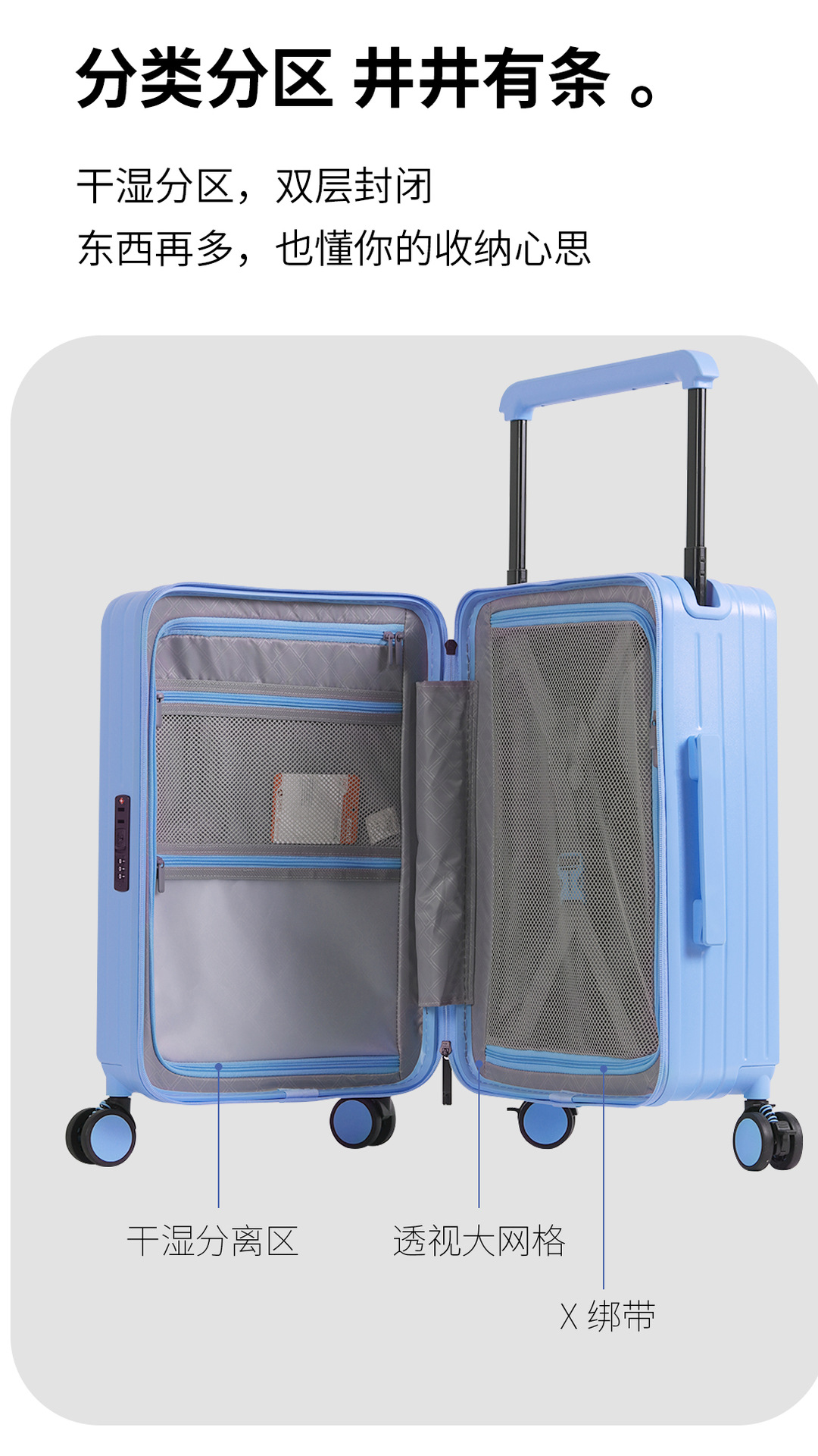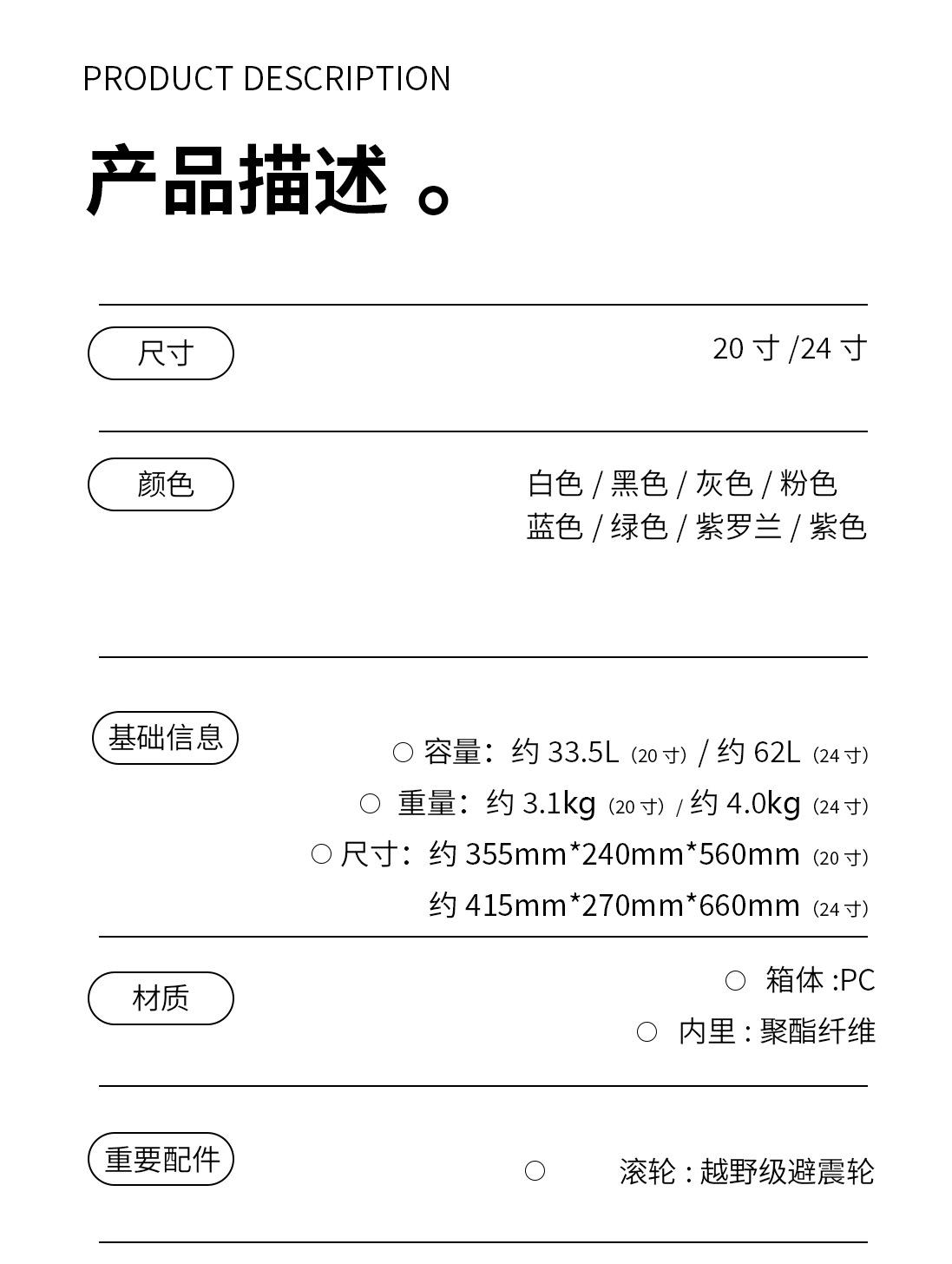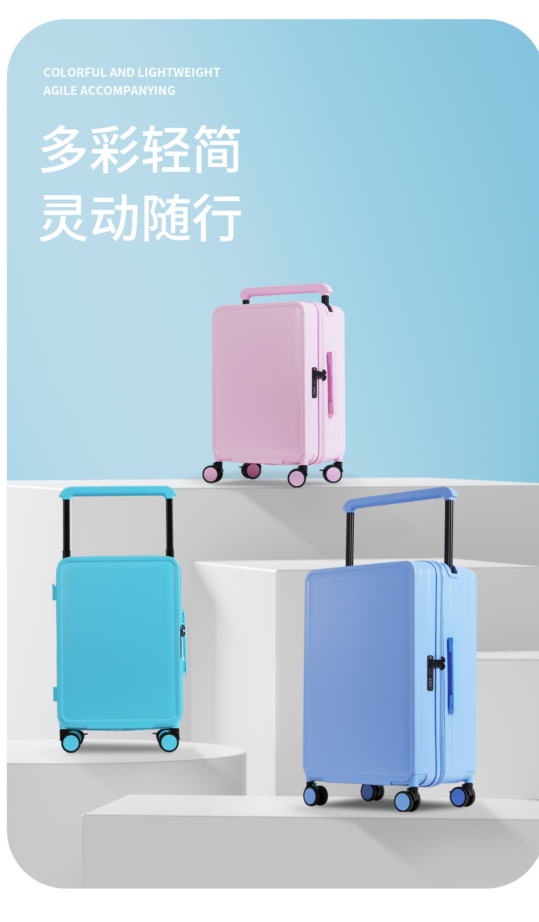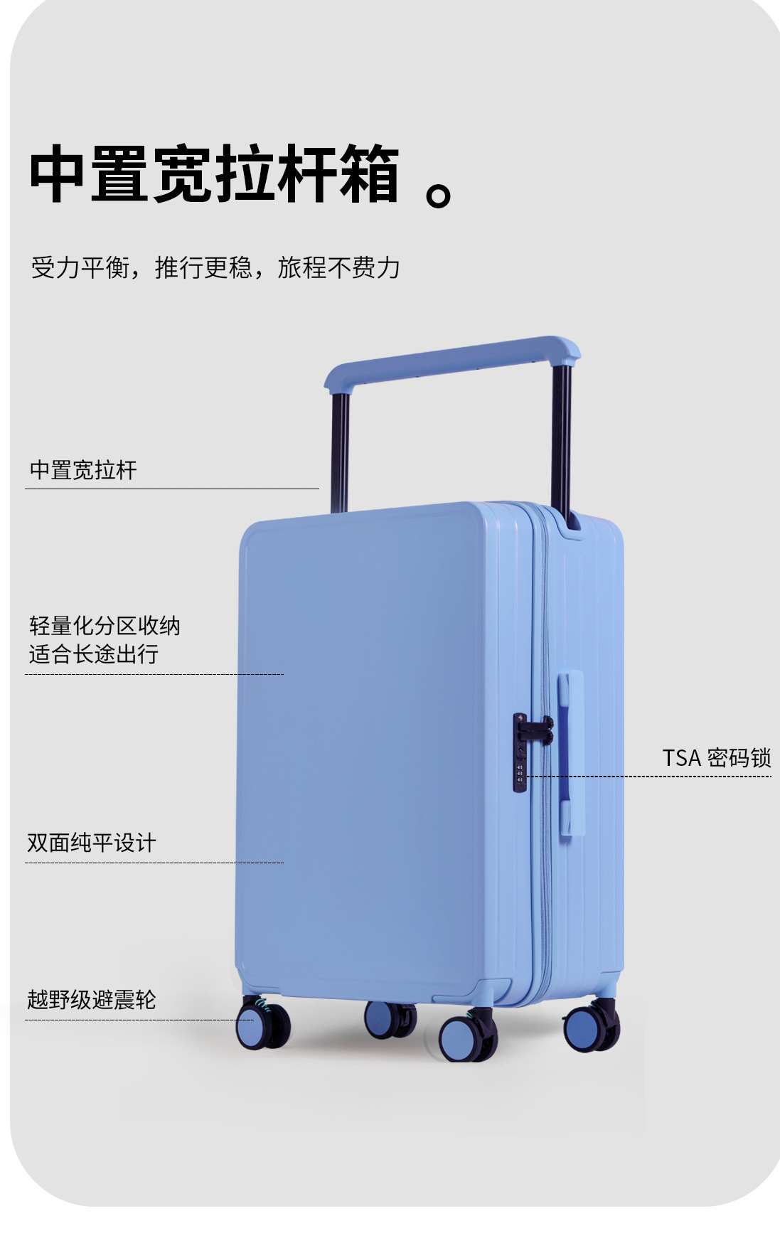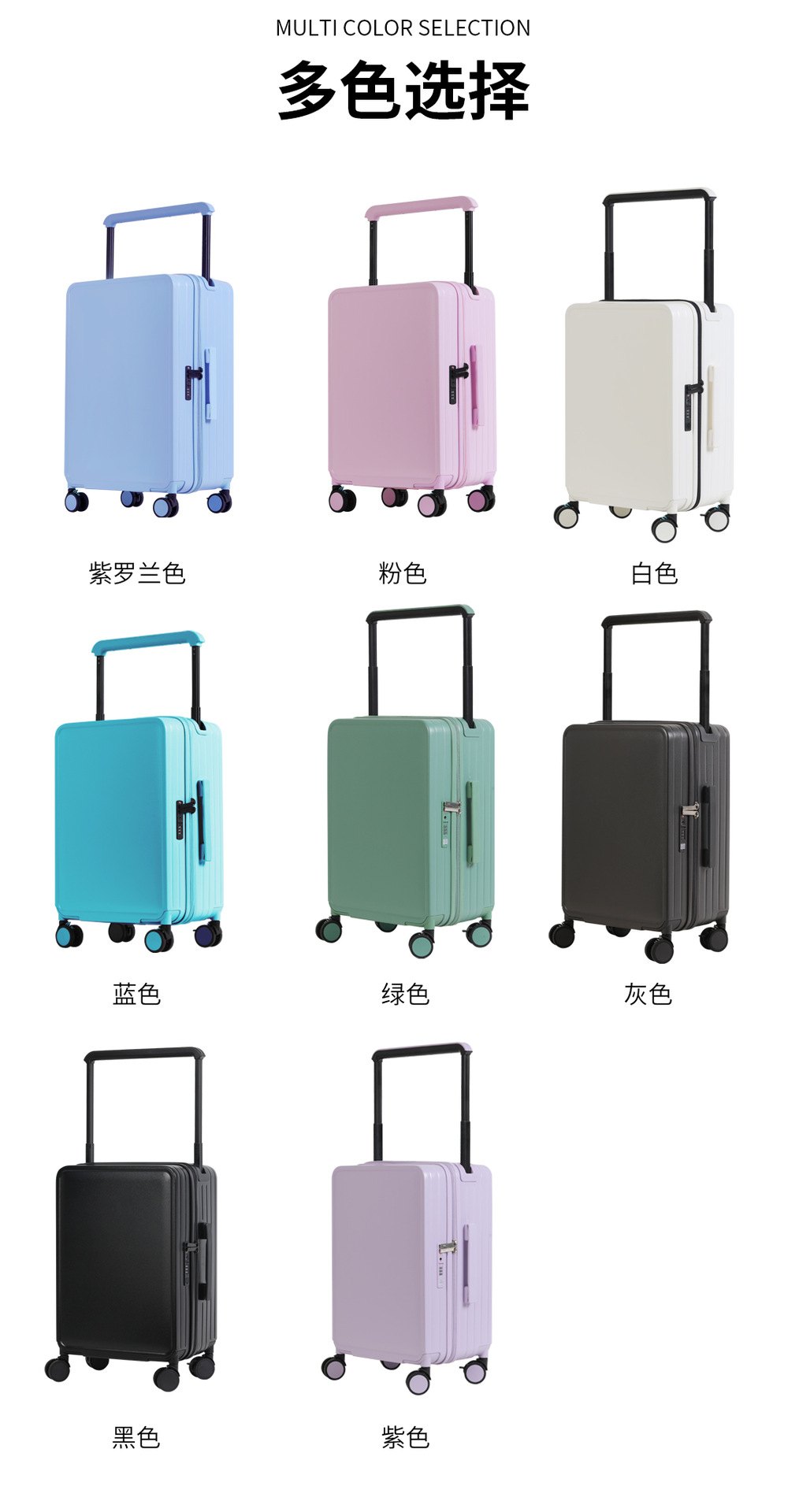 2024 새로운 와이드 타이로드 수하물 유니버설 휠 브레이크 휠 넓은 가방 지퍼/인쇄 가능한 패턴
