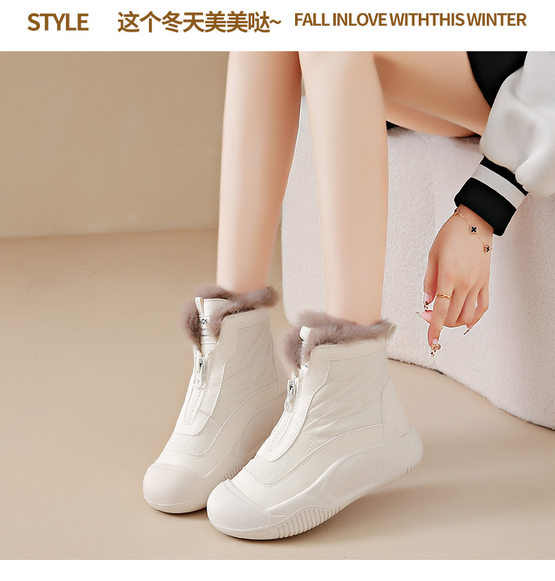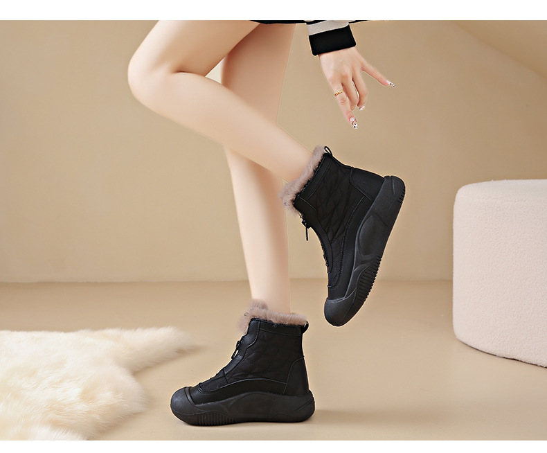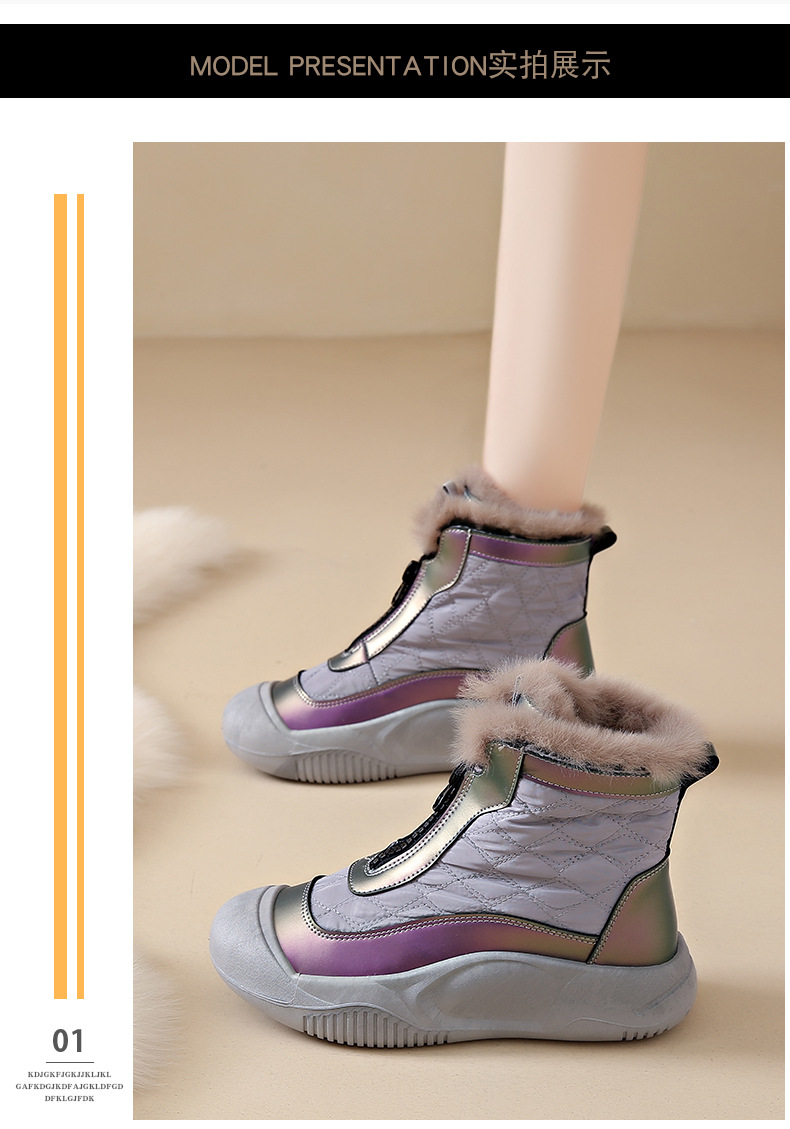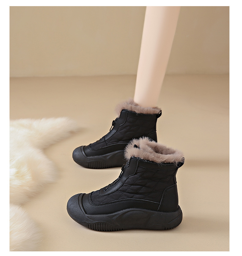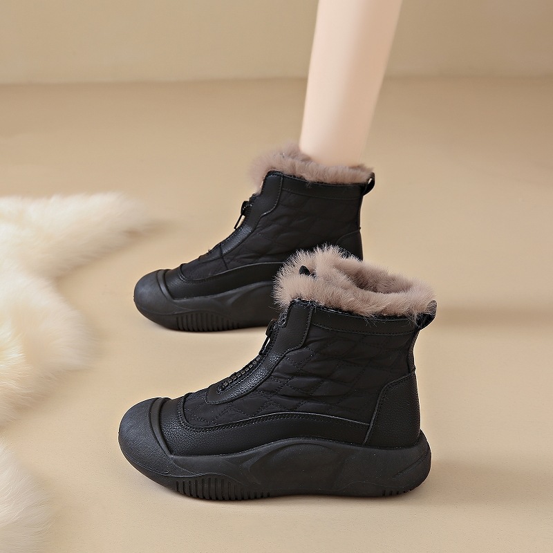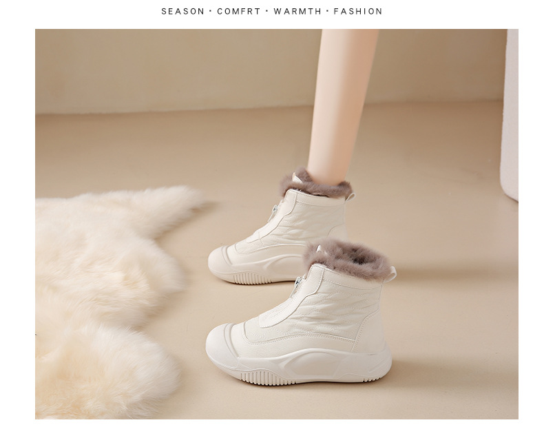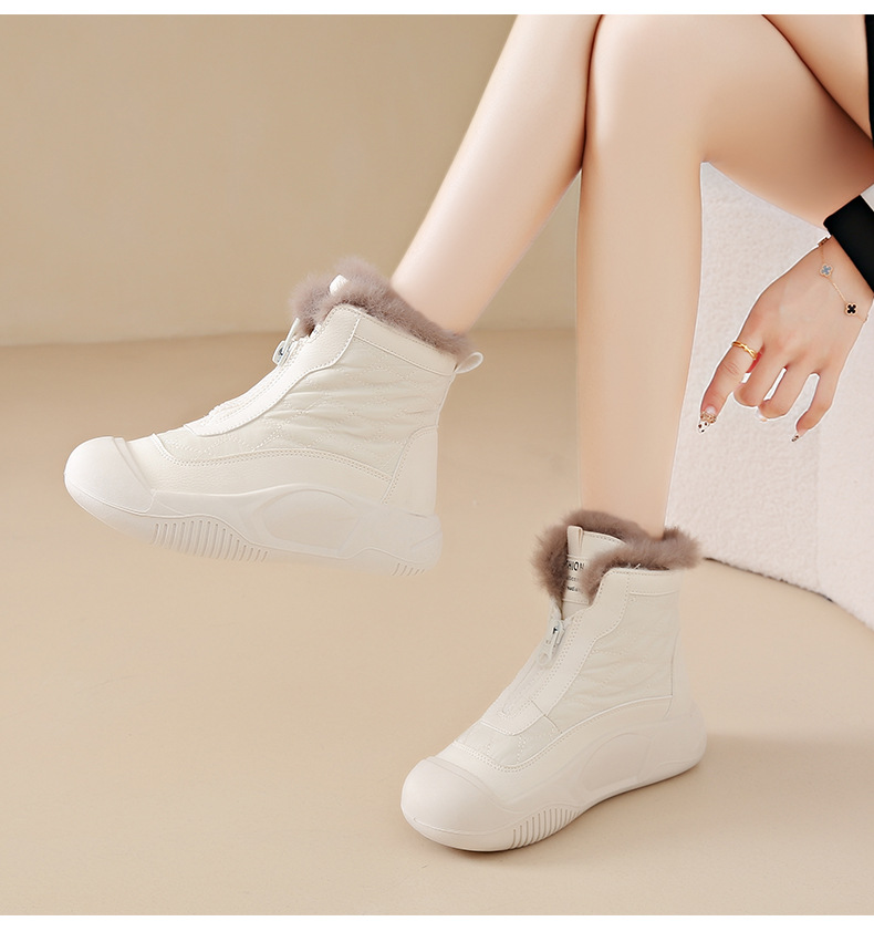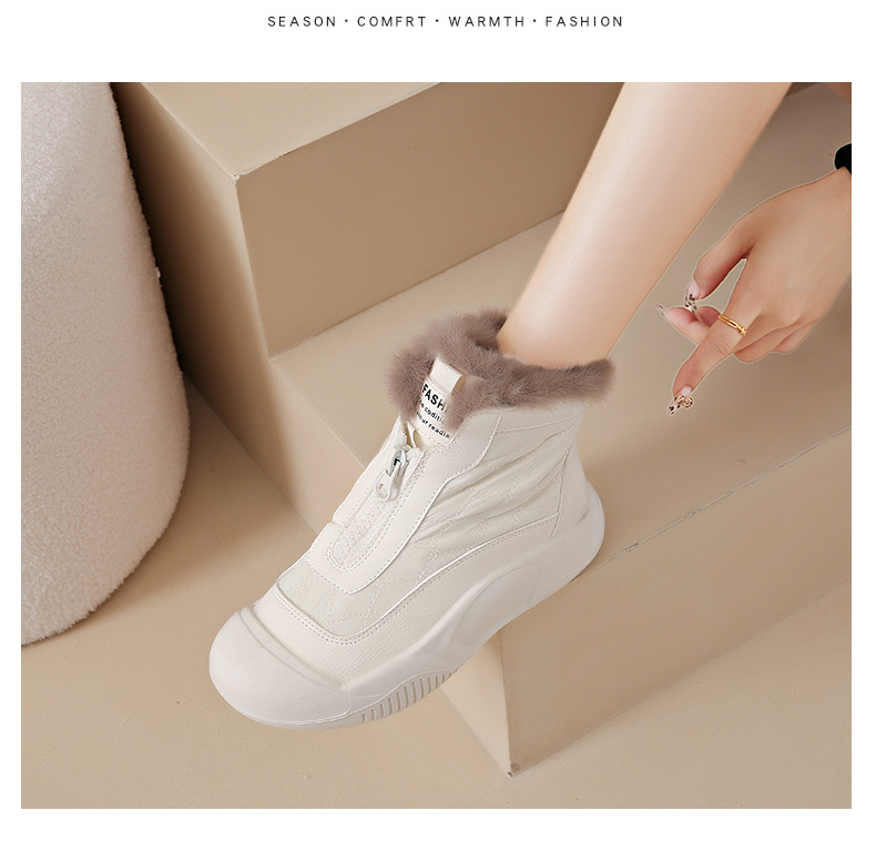 겨울 기모 하이 탑 신발 여성의 2024 새로운 야외 캐주얼 짧은 부츠 가죽 부츠 여성 올 매치 따뜻한 코튼 신발스토어 가기