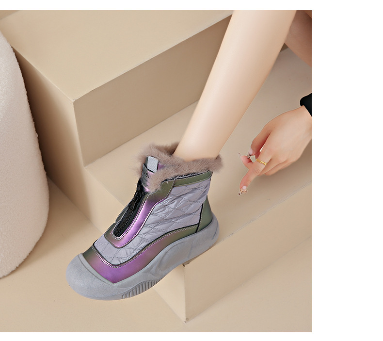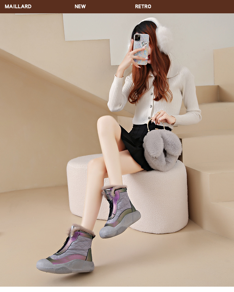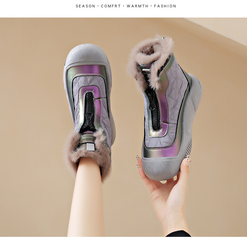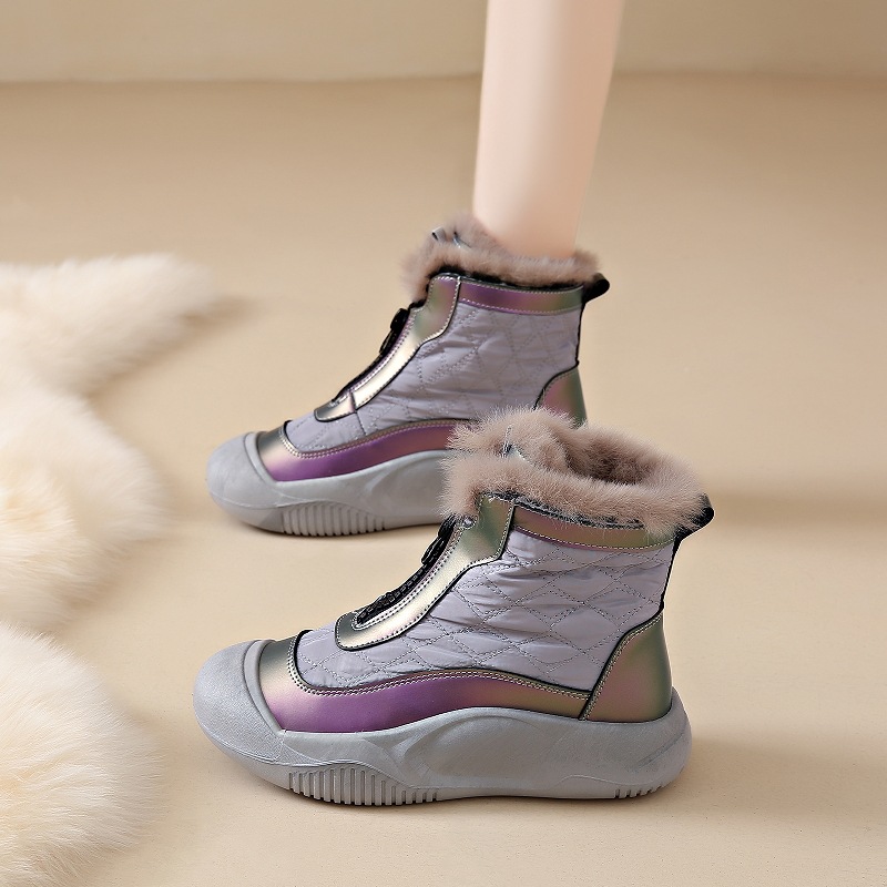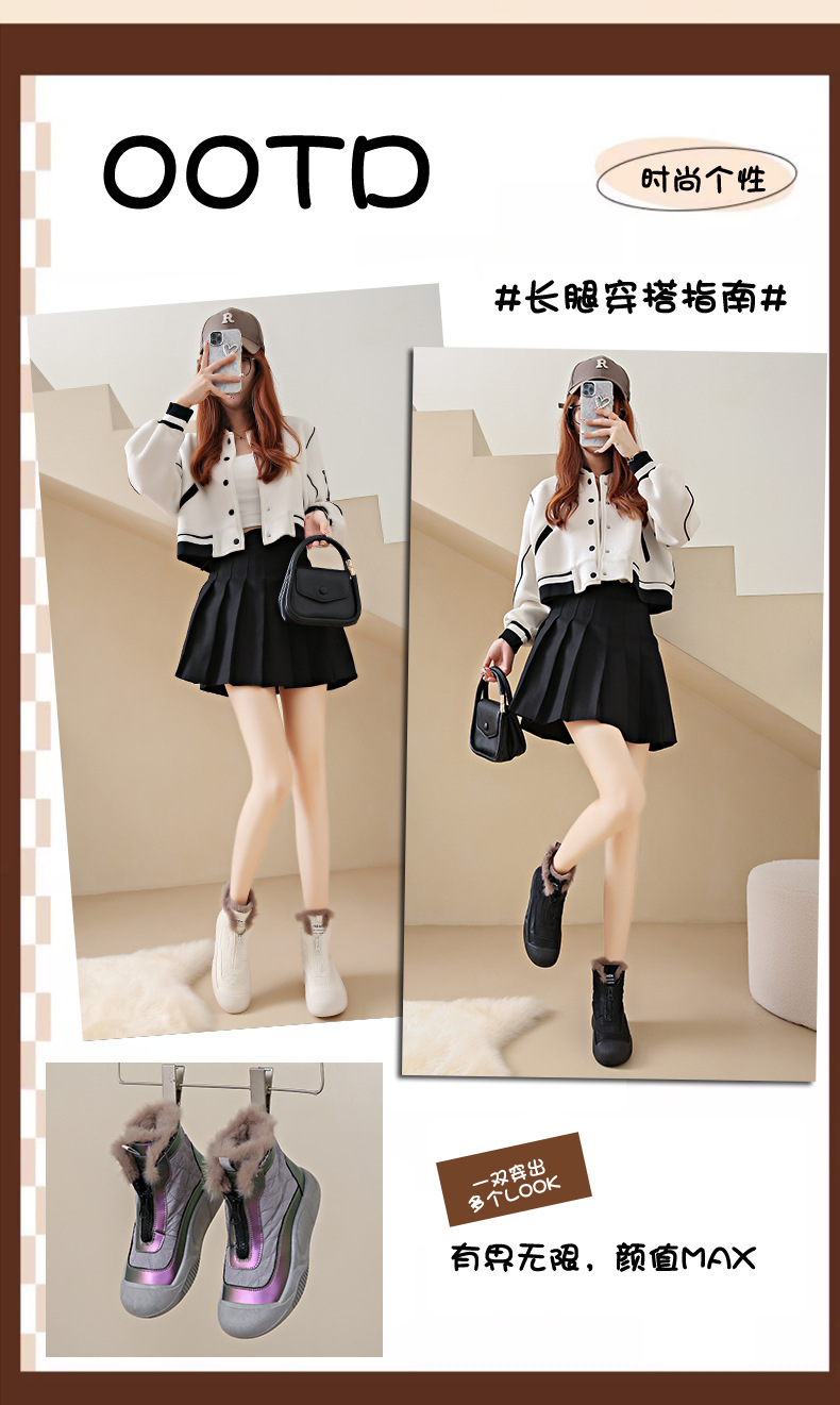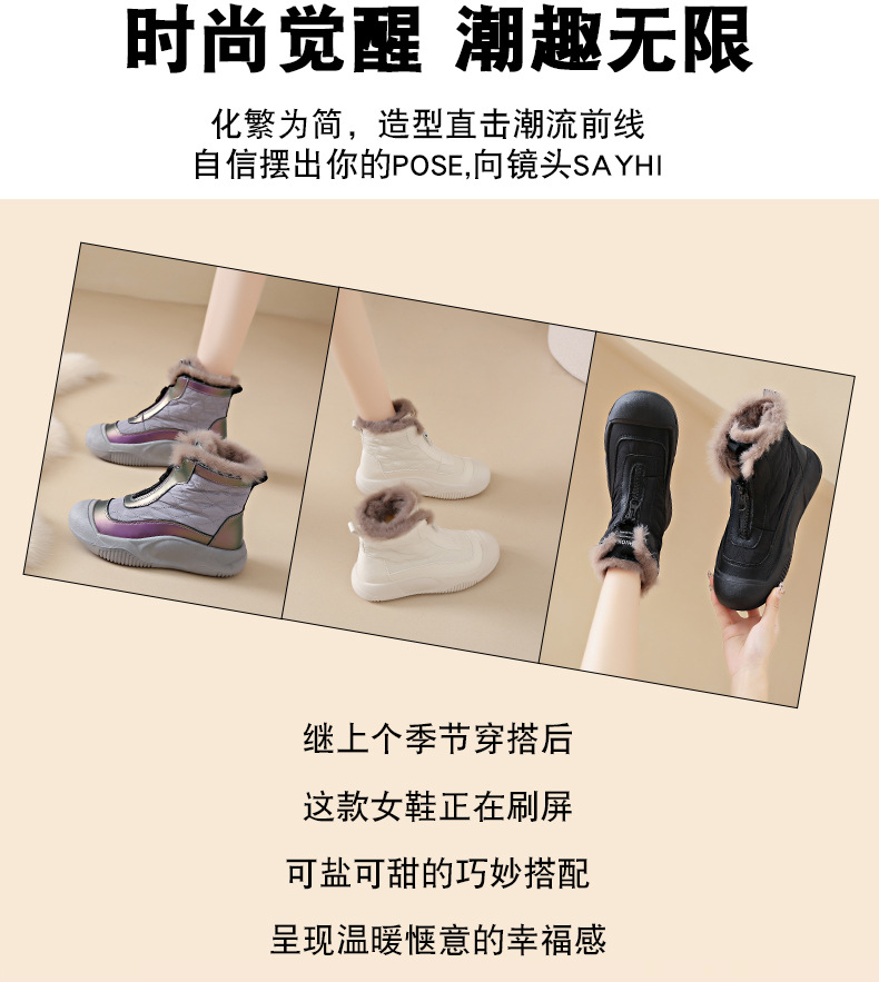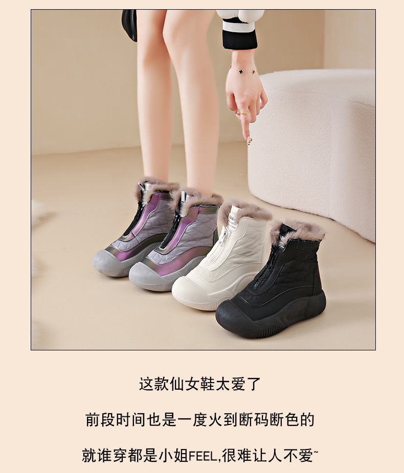 겨울 기모 하이 탑 신발 여성의 2024 새로운 야외 캐주얼 짧은 부츠 가죽 부츠 여성 올 매치 따뜻한 코튼 신발스토어 가기