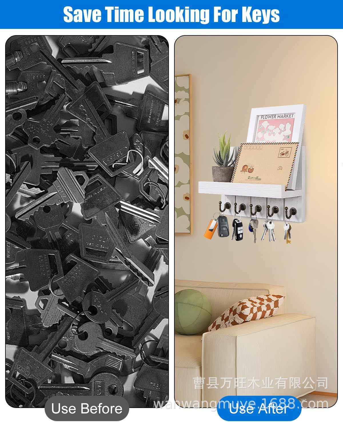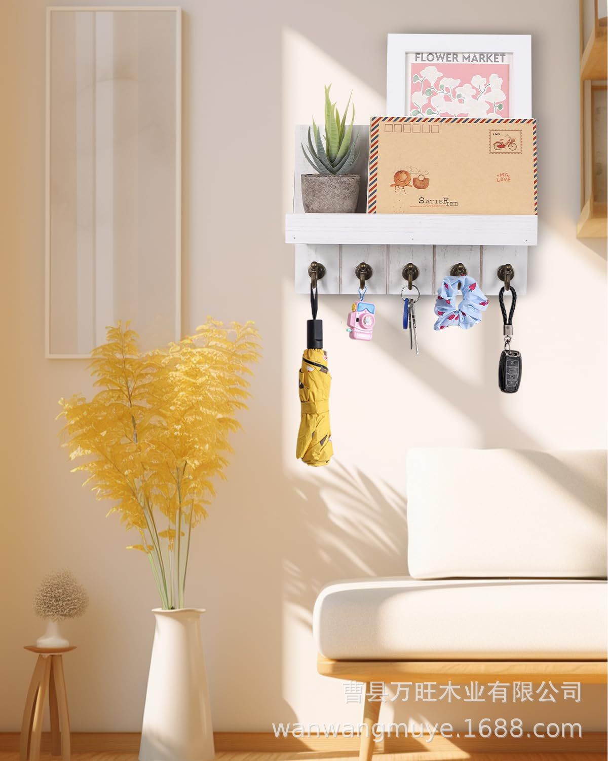 나무 메일 키 홀더 벽에 장착 된 복도 장식 복도 편지 안경 엽서 우산 보관 랙