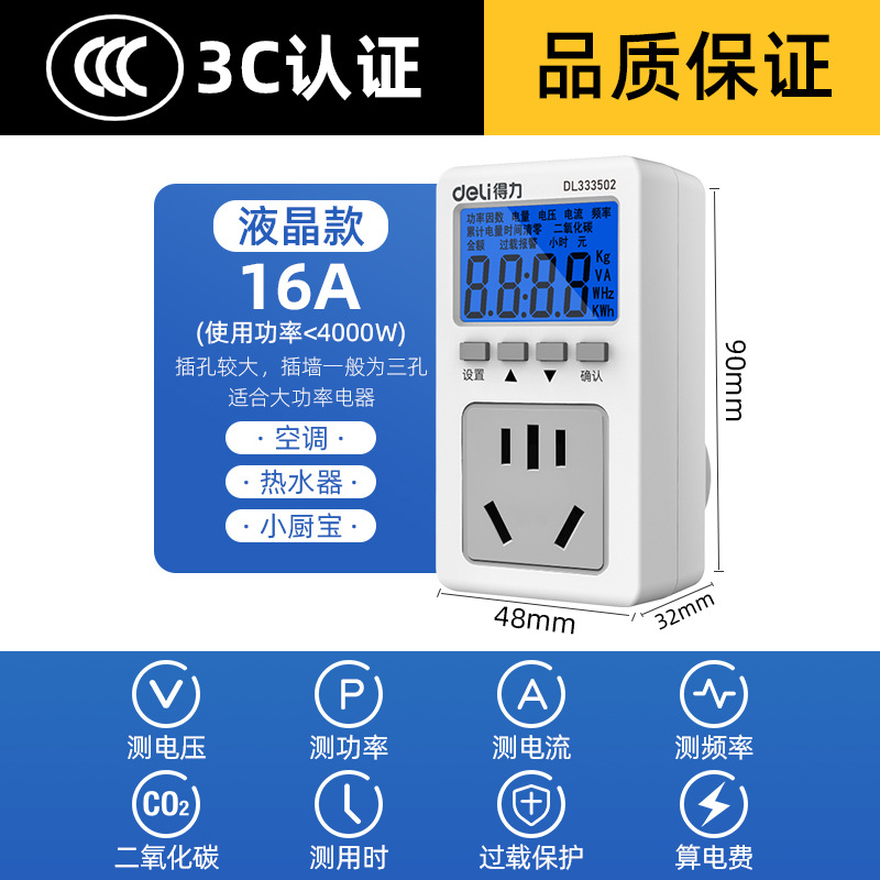 델리 공구 가정용 전기 미터 미터 소켓 전원 모니터 전원 에어컨 전기 미터