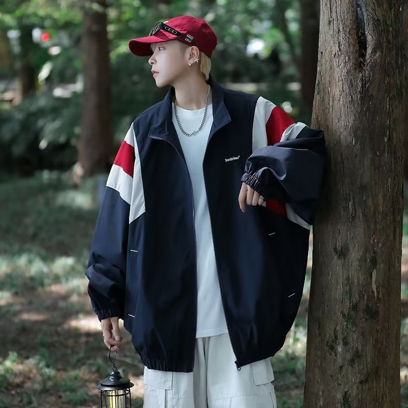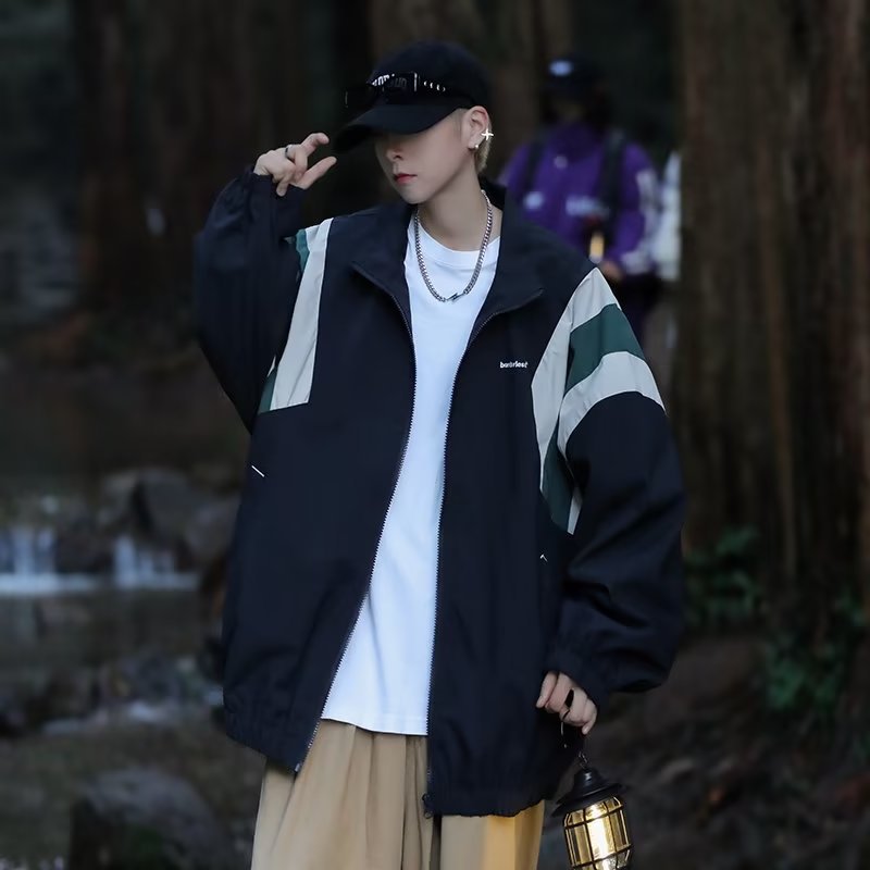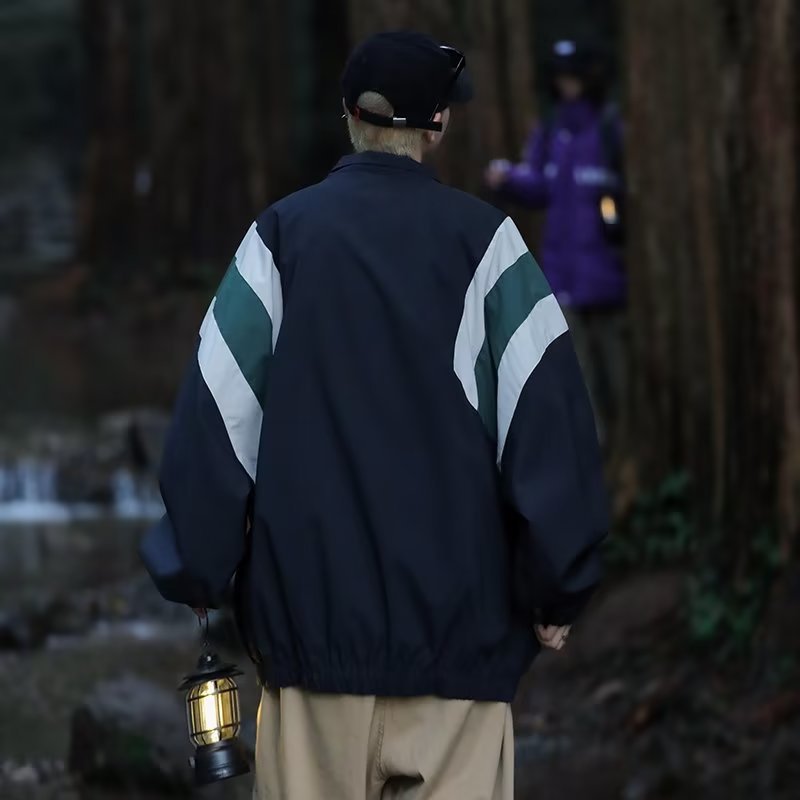 일본식 컬러블록 재킷 남성용 마운틴 스타일 트렌디 브랜드 미국 스타일 레트로 느슨하고 잘 생긴 야외 칼라 캐주얼 재킷스토어 가기