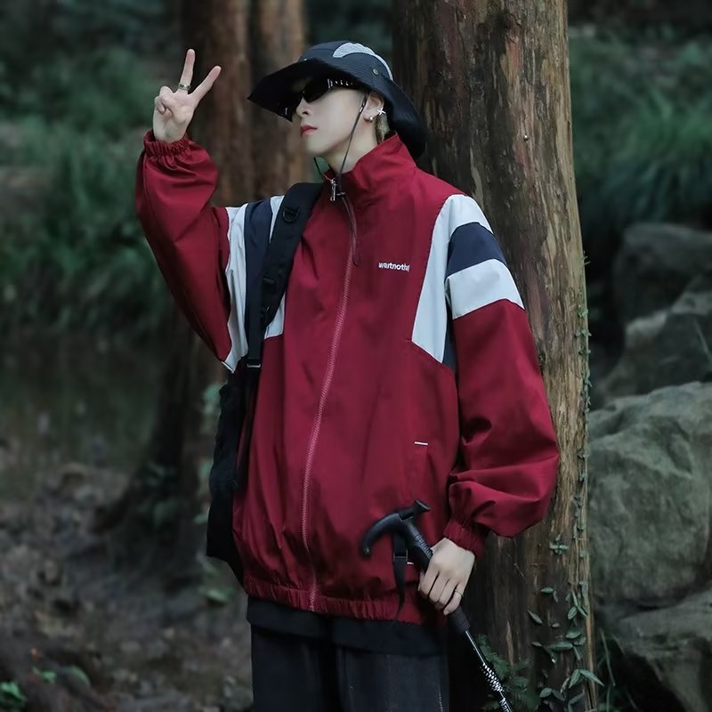 일본식 컬러블록 재킷 남성용 마운틴 스타일 트렌디 브랜드 미국 스타일 레트로 느슨하고 잘 생긴 야외 칼라 캐주얼 재킷