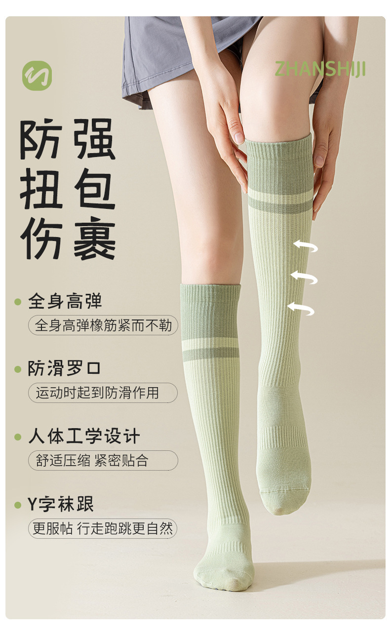 압력 양말 여성 스포츠 전문 피트니스 달리기 로프 건너 뛰기 근육 압축 양말 긴 튜브 요가 스키니 다리 얕은 양말