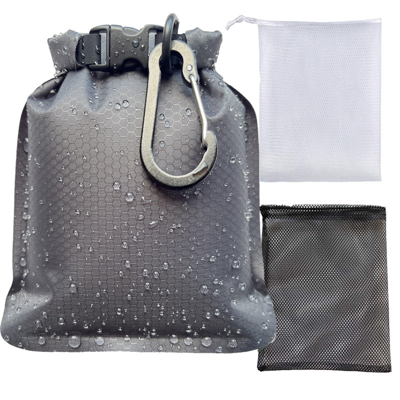 • 회색 비누 주머니 + 흰색 망사 + 검정 고리 잠금장치