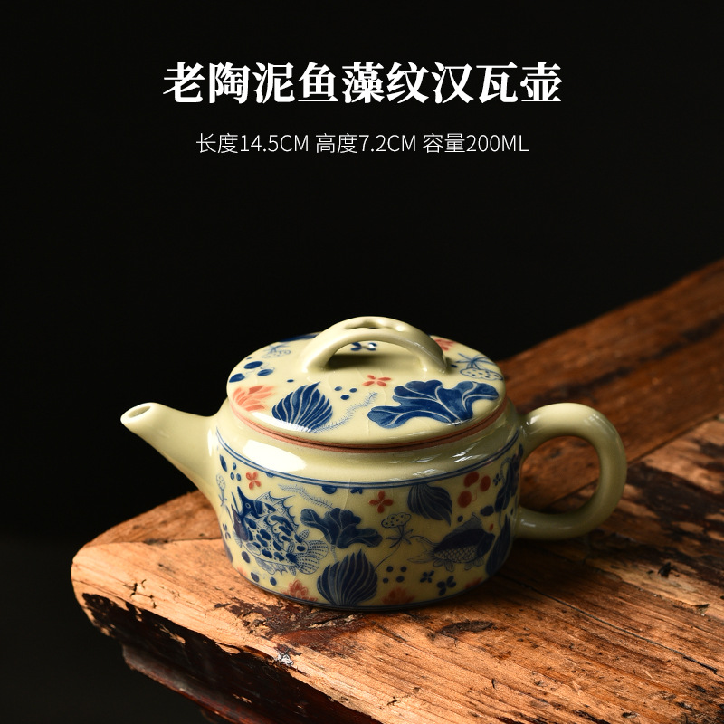• 오래된 점토 생선과 조류 무늬 한화 냄비