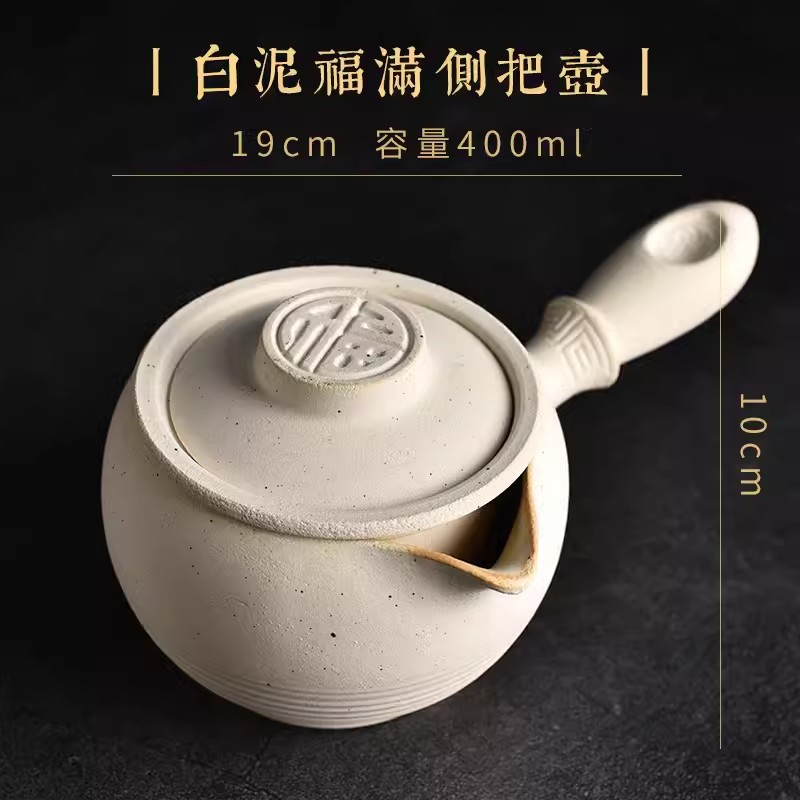• 흰색 점토 옆 손잡이 냄비(건조 가능)