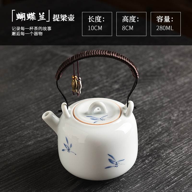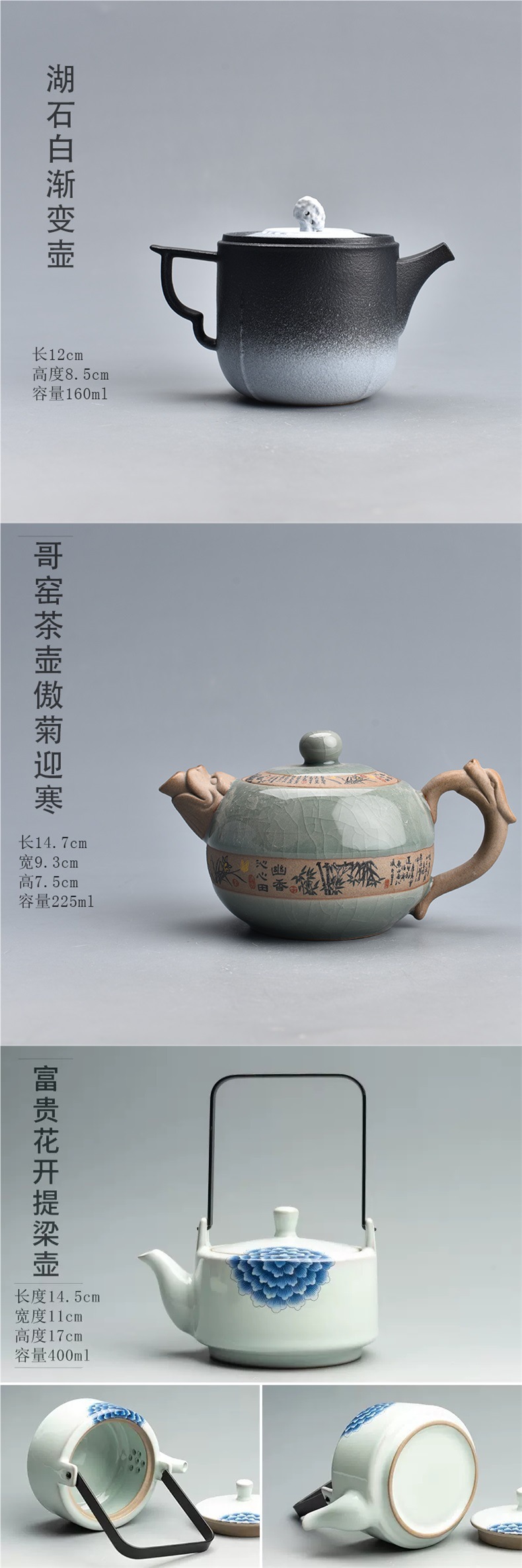 세라믹 주전자 주전자 단일 냄비 가정용 흰색 도자기 Ru Kiln Kung Fu 차 세트 차 물 분리 보라색 모래 냄비스토어 가기
