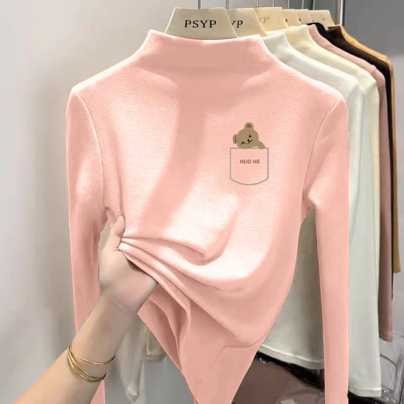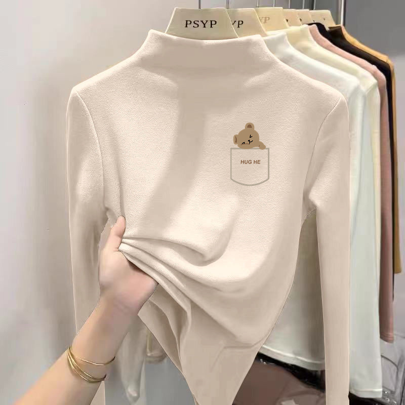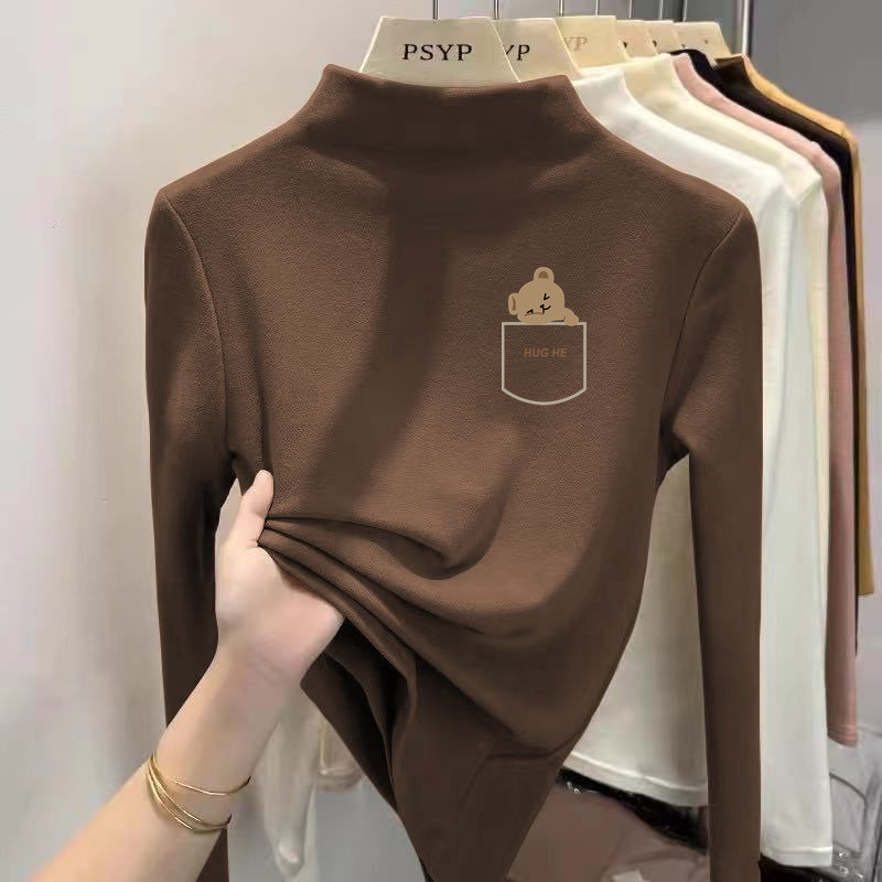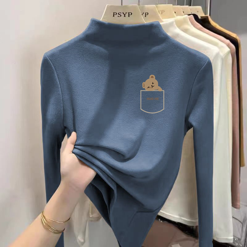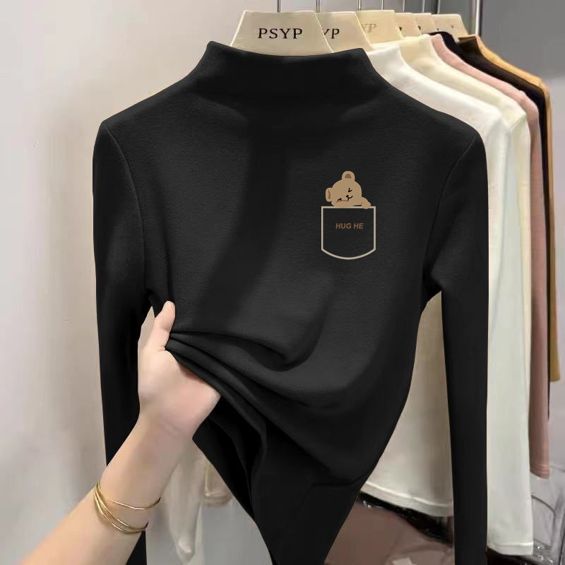 Y2556 # 어린이 벨벳 세미 하이 칼라 바닥 셔츠 소녀 소년 긴팔 티셔츠 큰 어린이 기모 따뜻한 코트 T스토어 가기