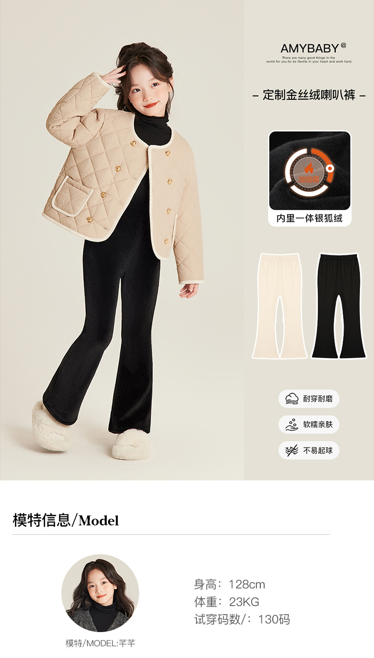 Amybaby 소녀 바지 겨울 2024 새로운 서양 스타일 두꺼운 따뜻한 캐주얼 플라 바지