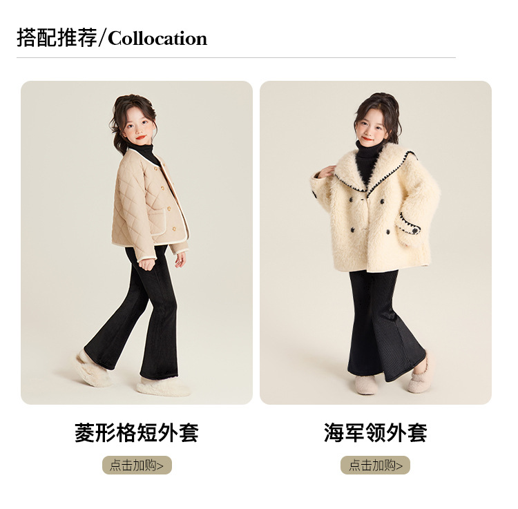 Amybaby 소녀 바지 겨울 2024 새로운 서양 스타일 두꺼운 따뜻한 캐주얼 플라 바지스토어 가기