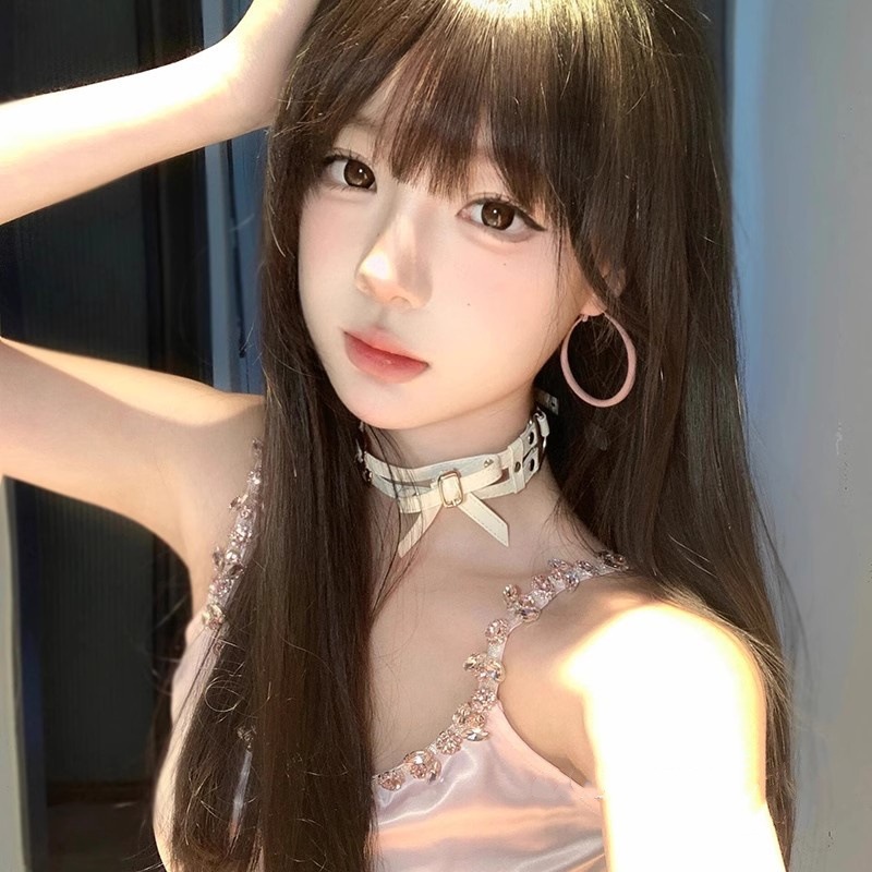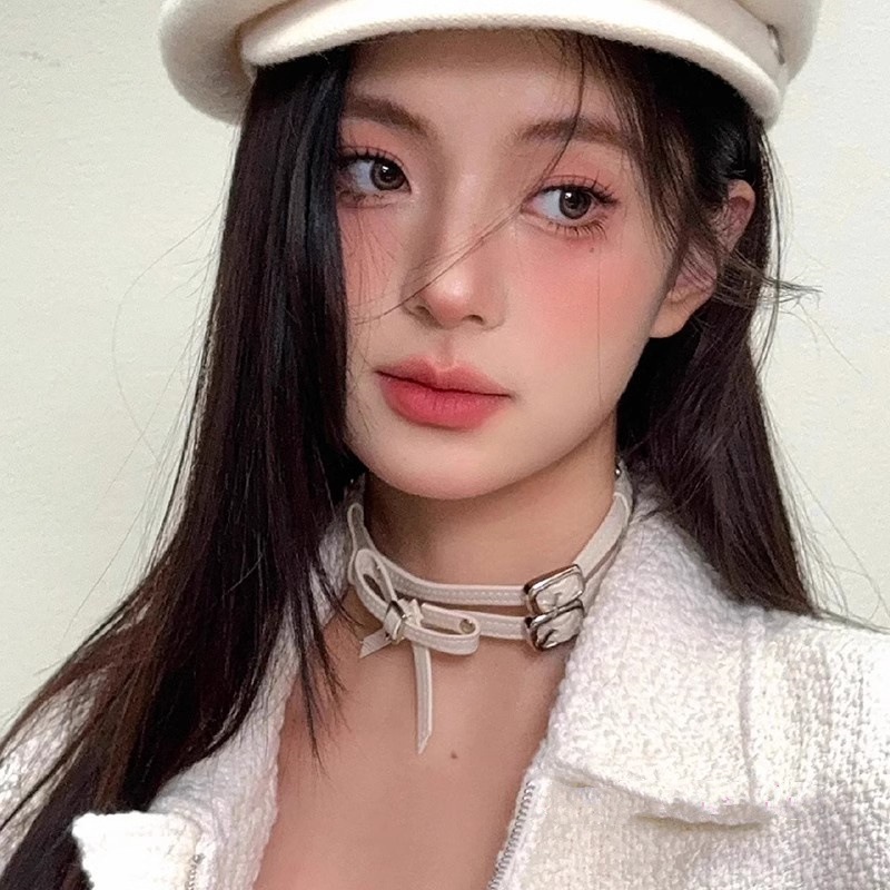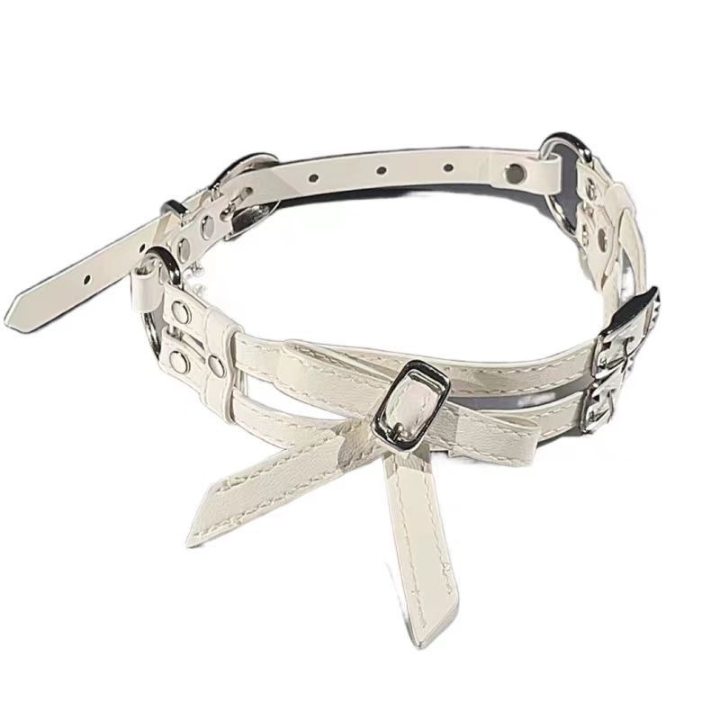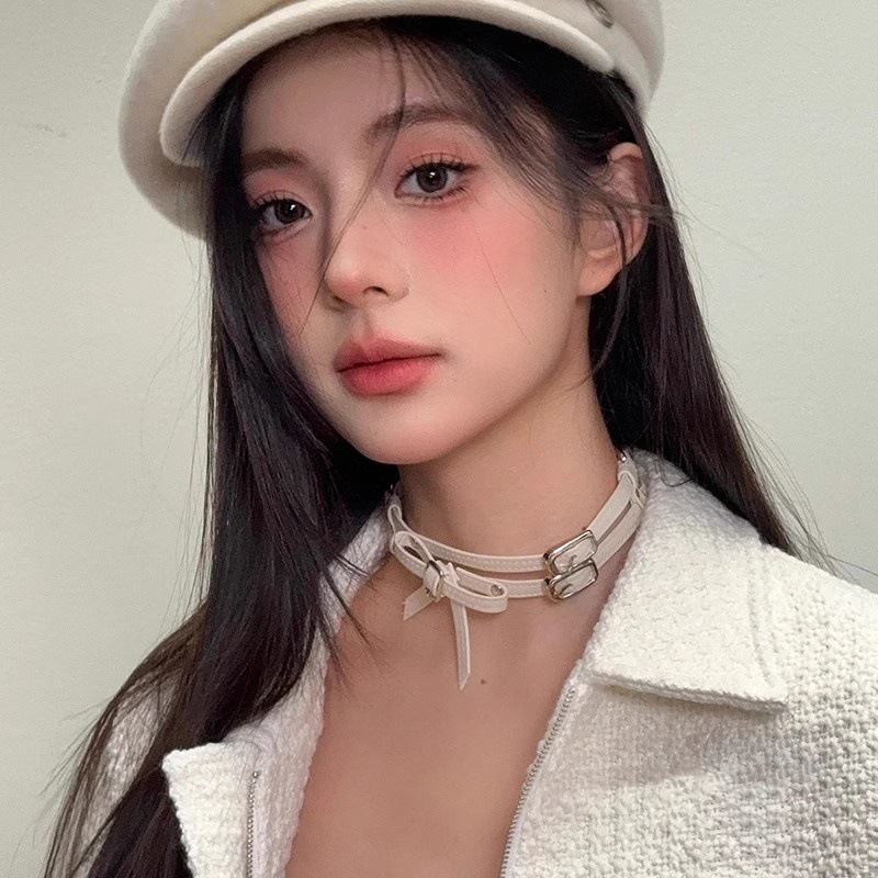 화이트 더블 레이어 벨트 활 초커 칼라 여성 달콤한 쿨 핫 펑크 스타일 칼라 체인 디자인 넥 링