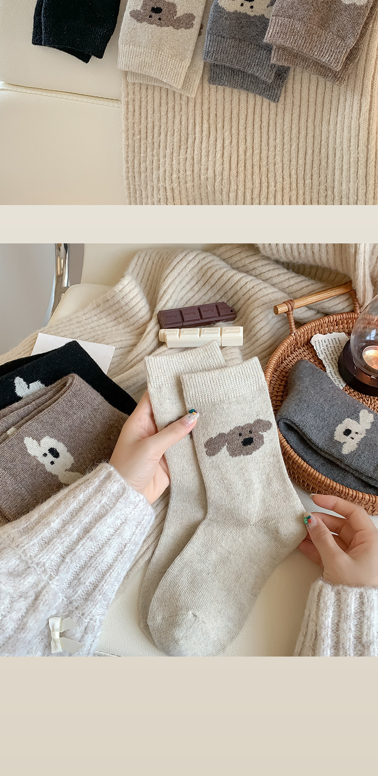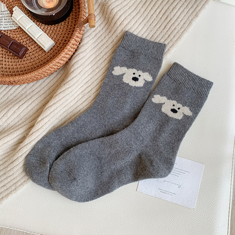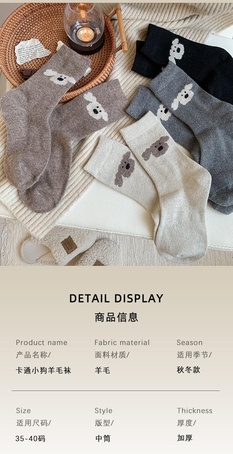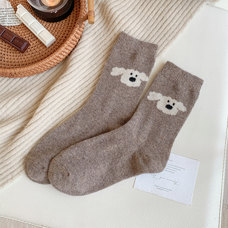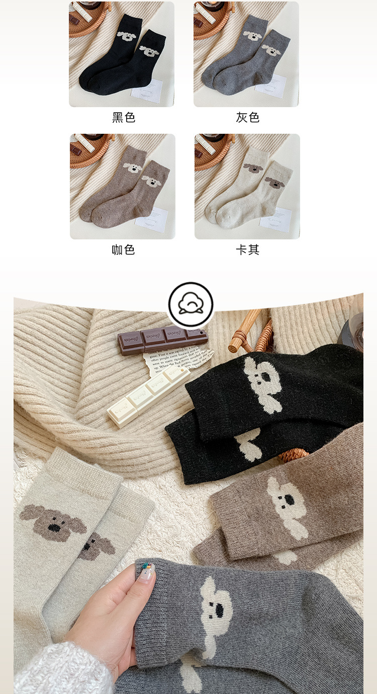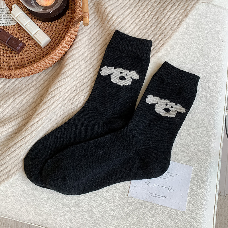 가을과 겨울 두꺼운 강아지 양모 양말 일본식 인스타그램 스타일 트렌디 올매치 귀여운 만화 중간 길이 양말 한국 스타일 스타킹스토어 가기