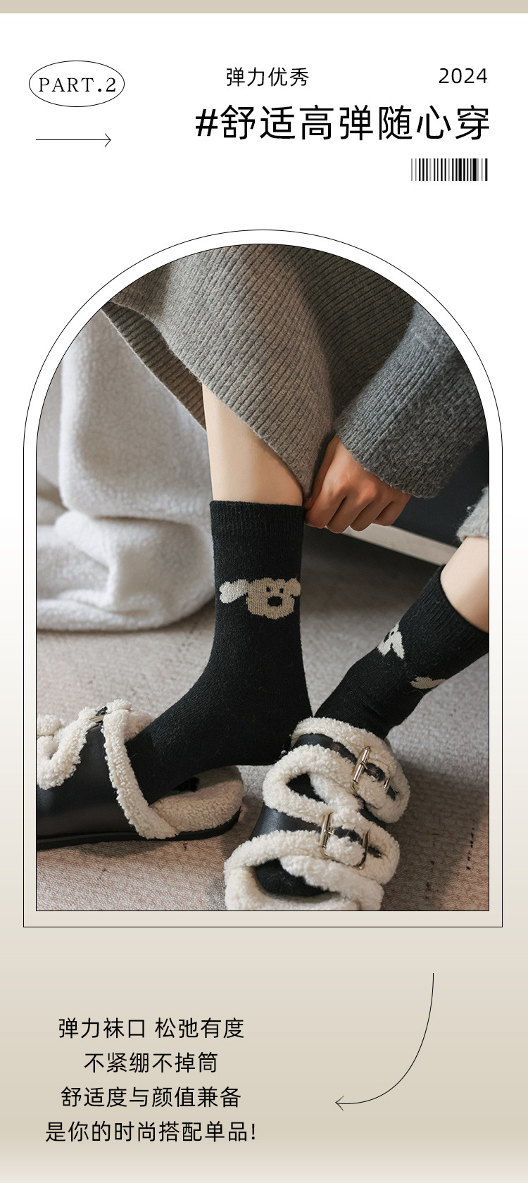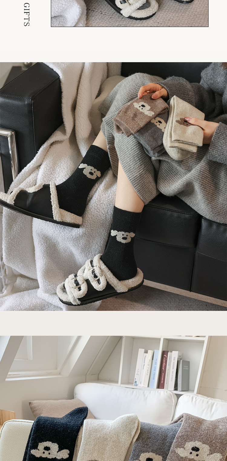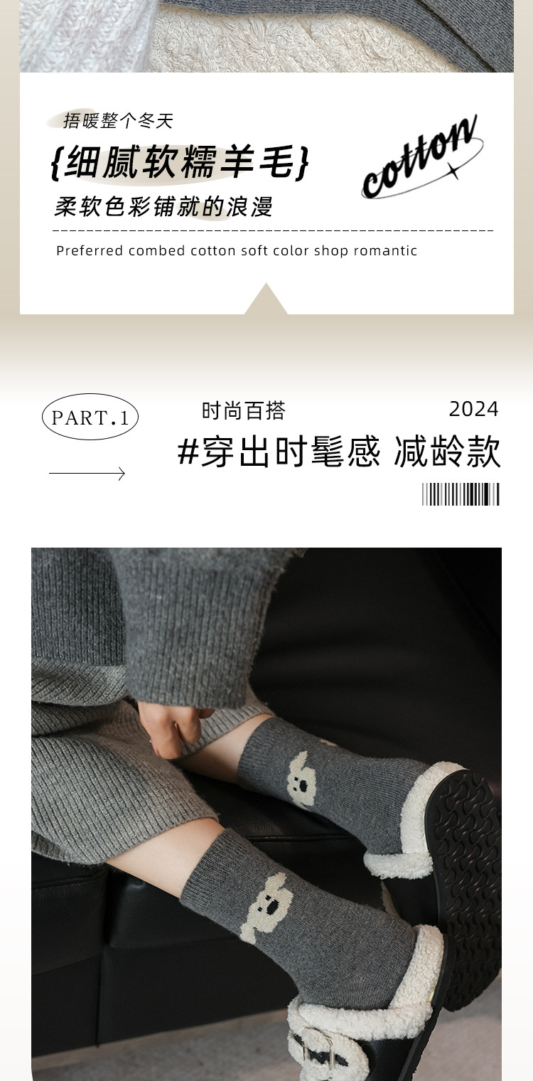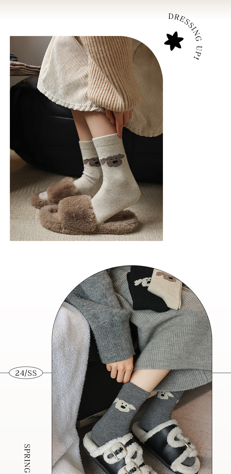 가을과 겨울 두꺼운 강아지 양모 양말 일본식 인스타그램 스타일 트렌디 올매치 귀여운 만화 중간 길이 양말 한국 스타일 스타킹스토어 가기